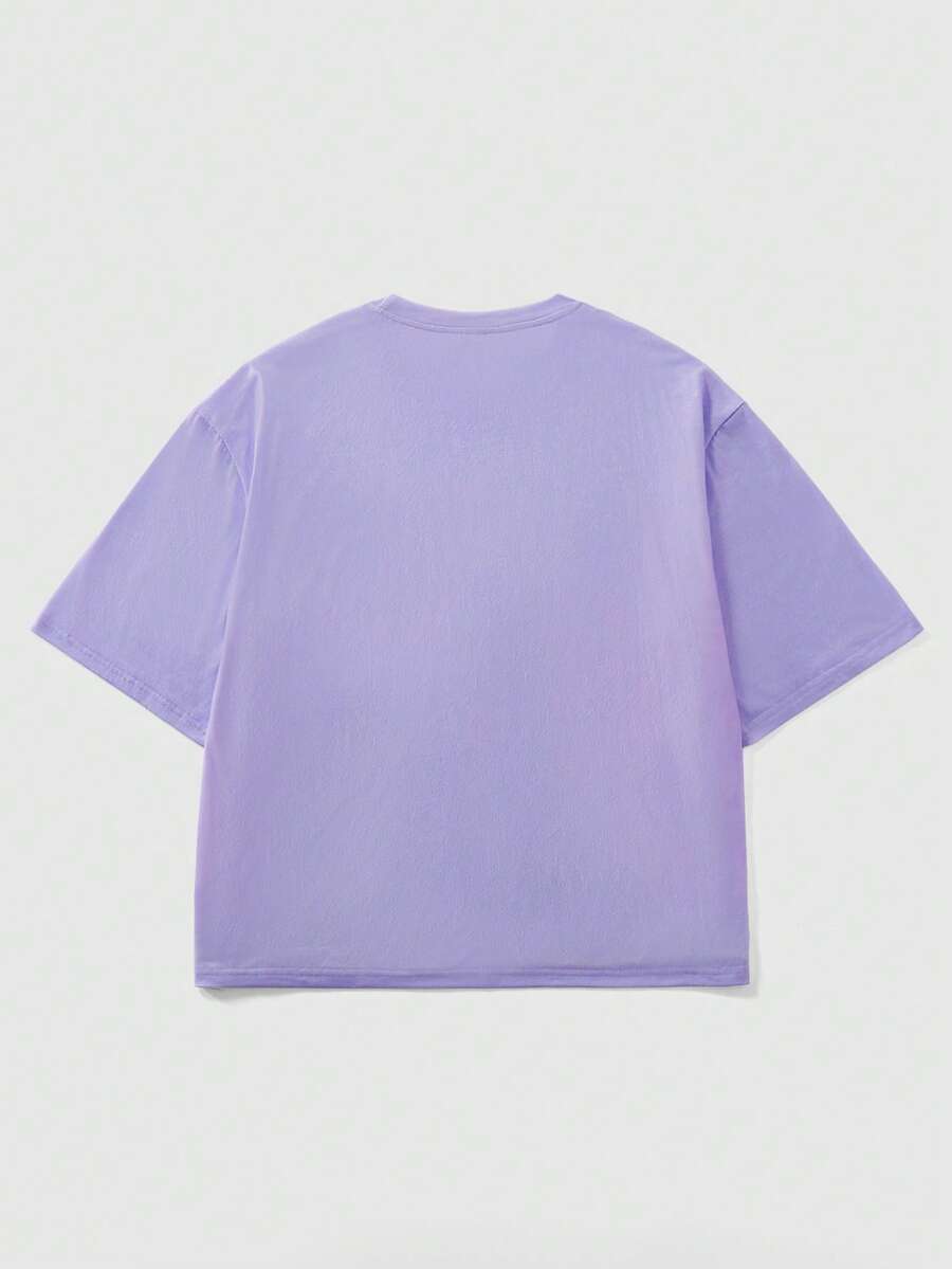 Teletubbies X ROMWE Men's Casual Cute Cartoon & Letter Graphic Loose Short Sleeve T-Shirt, Suitable For Daily Commute In Summer