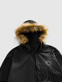 Men Gothic Patchwork Fluffy Embroidery Long Sleeve Hooded Jacket, Street Style, Autumn/Winter
