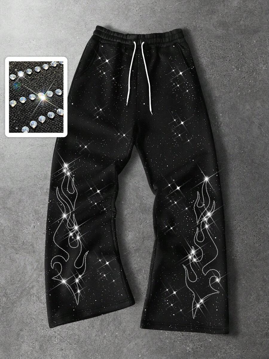 Street Life Men's Casual Sweatpants With Rhinestone Decoration