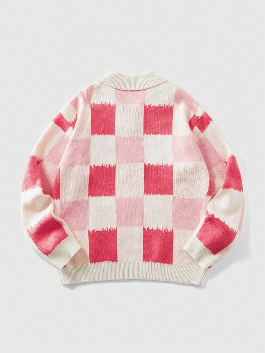 Men's Color Block Letter Preppy Embroidery Long Sleeve Sweater