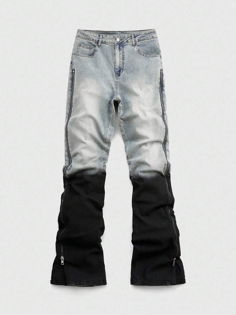 Street Life Men's Fashion Contrast Color Zipper Pocket Flared Leg Jeans
