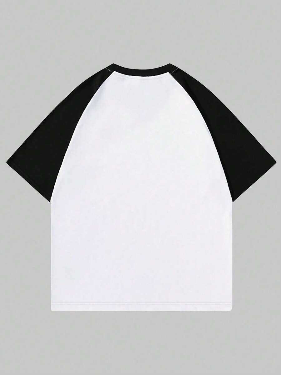 Goth Men's Letter & Cross Print Contrast Color Round Neck Raglan Short Sleeve T-Shirt