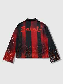 Street Life Men's Printed Long Sleeve Striped Polo Collar T-Shirt, Casual College Style Top
