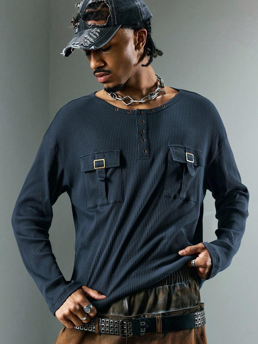 Street Life Men's Punk Style Round Neck Long Sleeve T-Shirt, Autumn