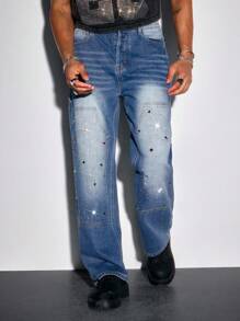 Street Life Men's Rhinestone Decorated Pocket Casual Fashion Wide-Leg Jeans