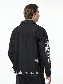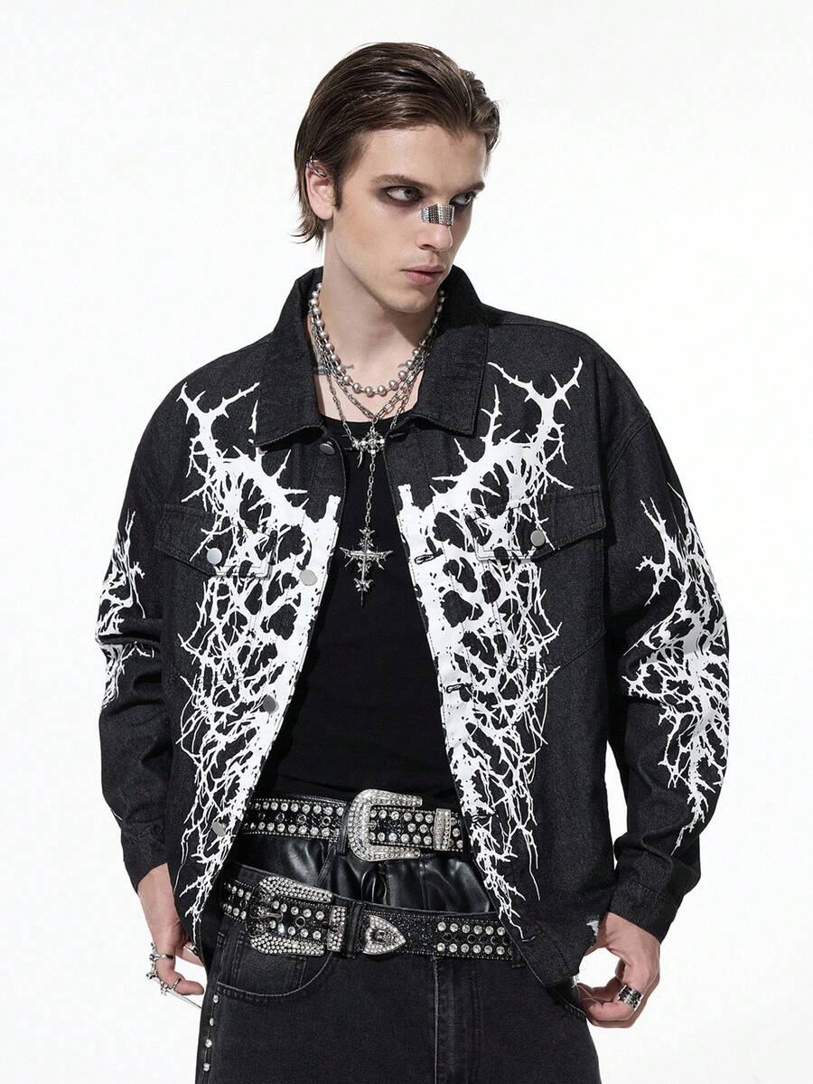 Goth Men's Short Denim Jacket, Vintage Street Style