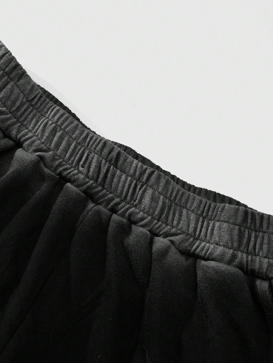 Grunge Punk Men's Street-Style Star Applique Design Distressed Shorts, With Black Diamond Patch On Left Thigh For Vintage Look,