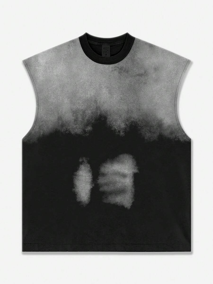 Grunge Punk Men's Summer Tie Dye Crew Neck Casual Loose Vintage Tank Top