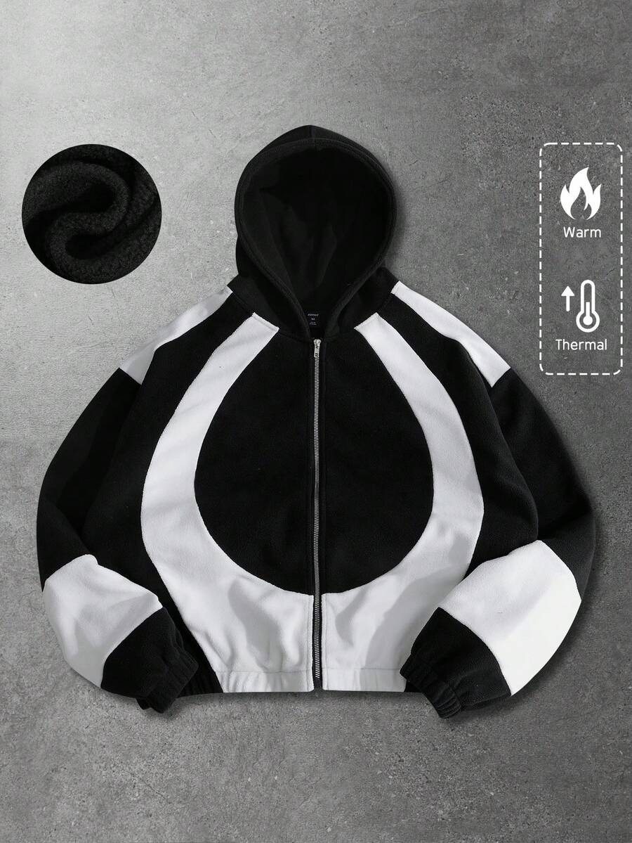 Men's Wool Blended Patchwork Street Style Thickened Thermal Lined Jacket, Casual Wear For Autumn/Winter