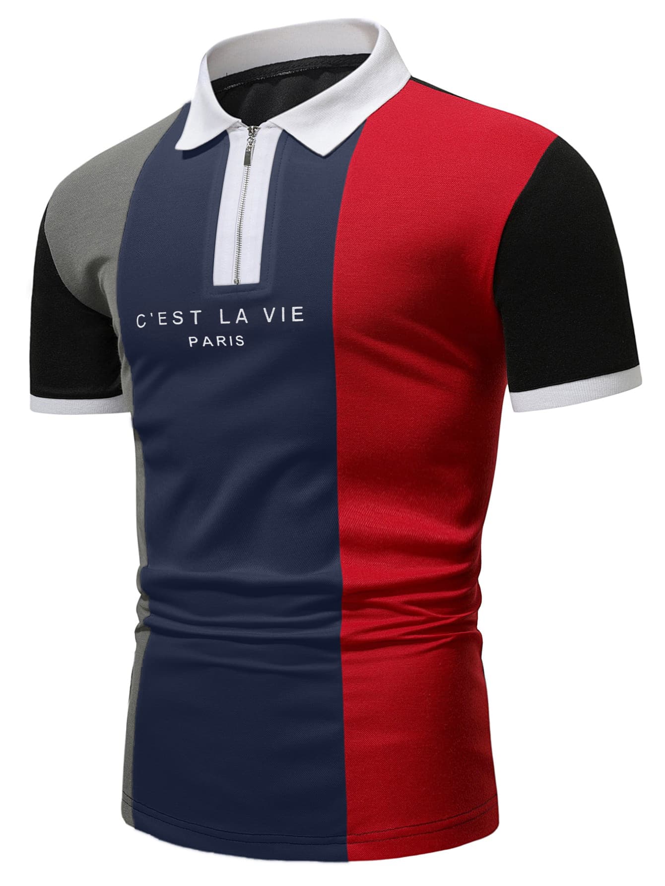 Guys Cut And Sew Quarter Zip Slogan Graphic Polo Shirt