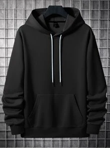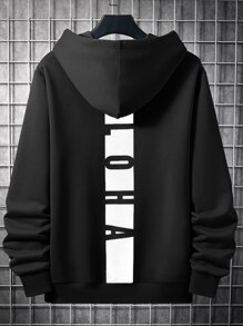 Guys Letter Graphic Kangaroo Pocket Drawstring Hoodie