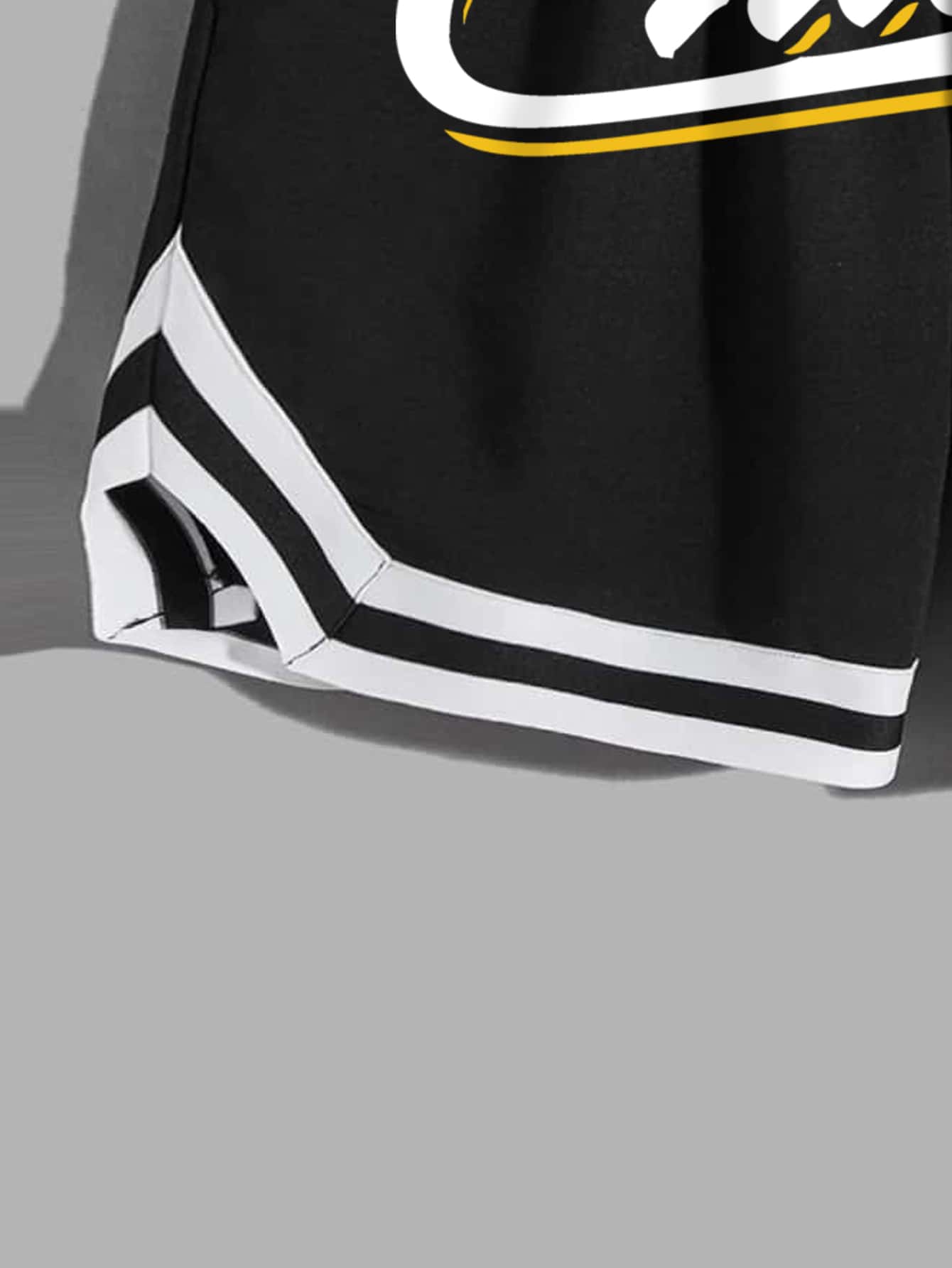 Guys Letter Graphic Striped Trim Drawstring Waist Shorts