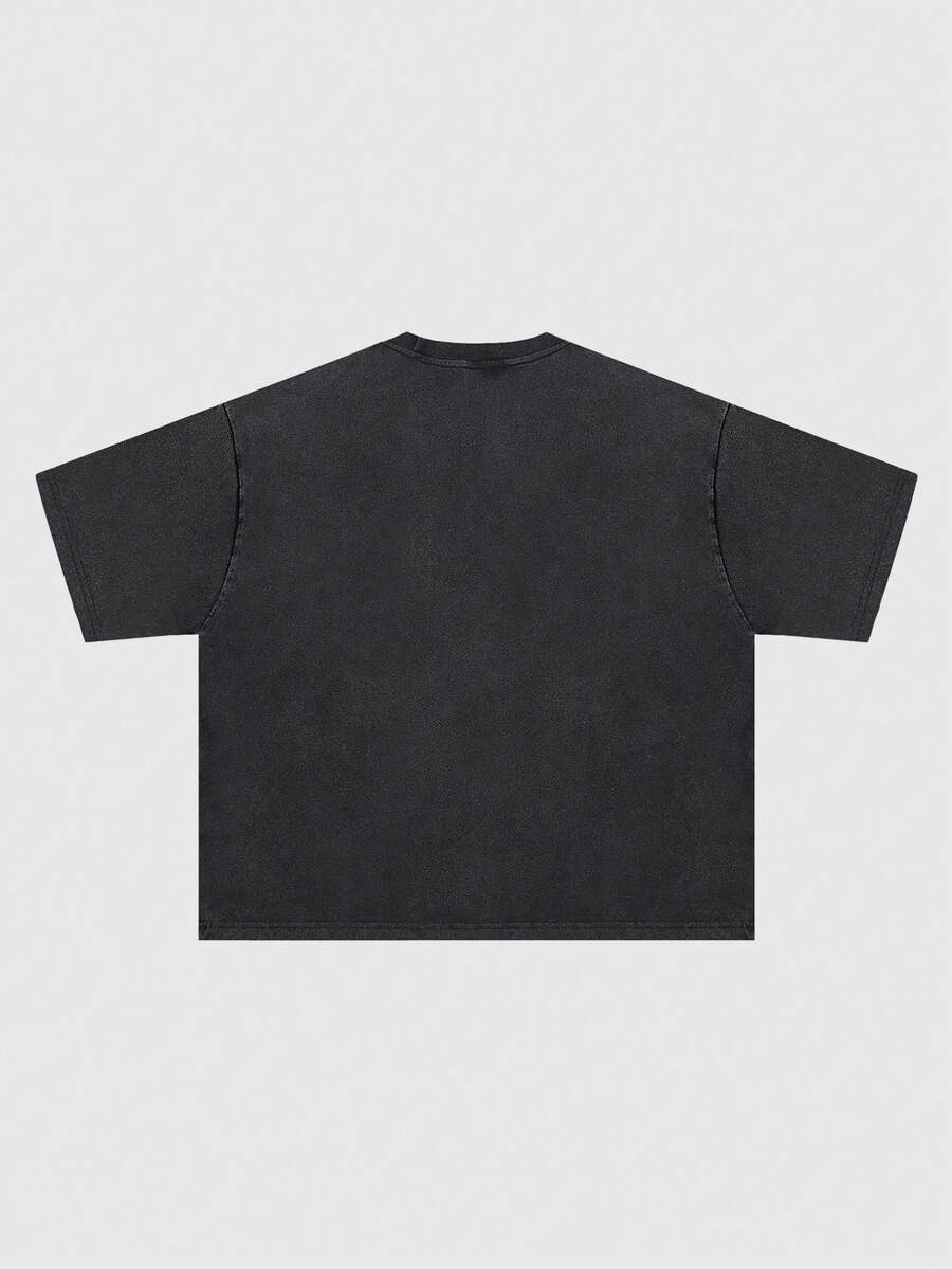 Men's Angel Rose Street Graphic Round Neck Black Short Sleeve T-Shirt
