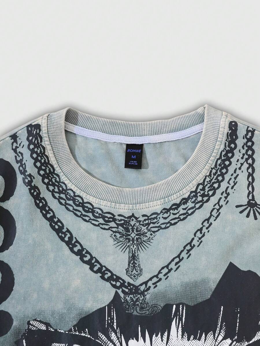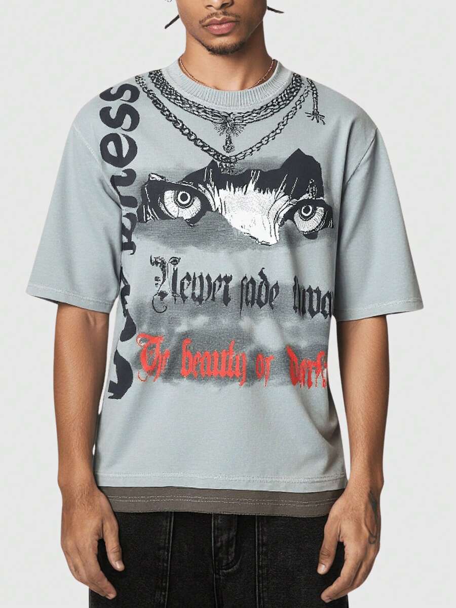 Men's Anime Character Crew Neck Short Sleeve Printed Casual Top, Everyday Wear