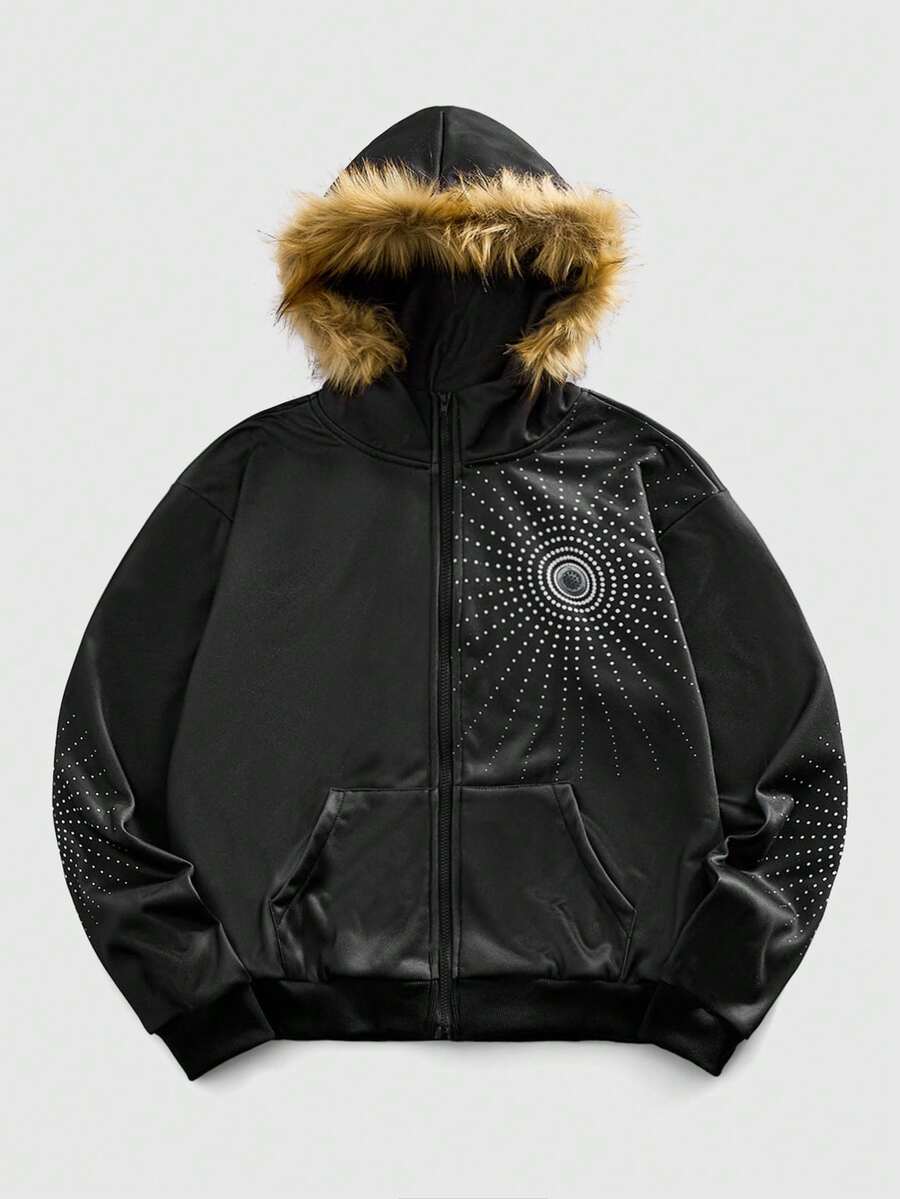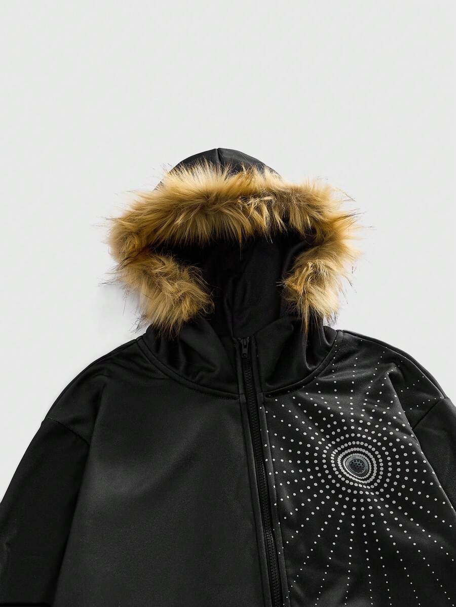 Men's Autumn/Winter Street Fashion Dark Style Faux Fur Collar Hooded Casual Jacket