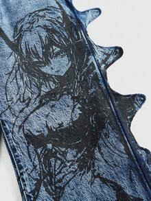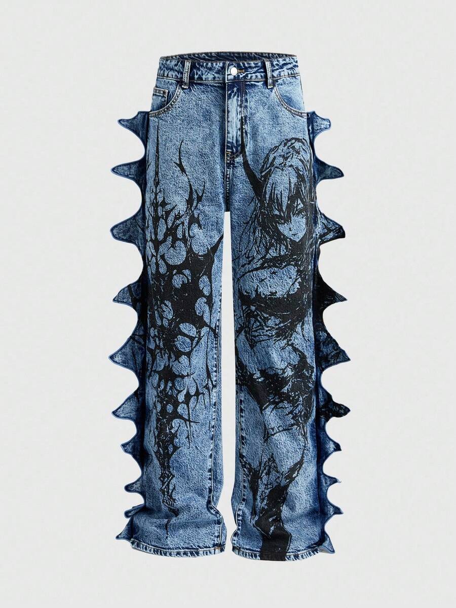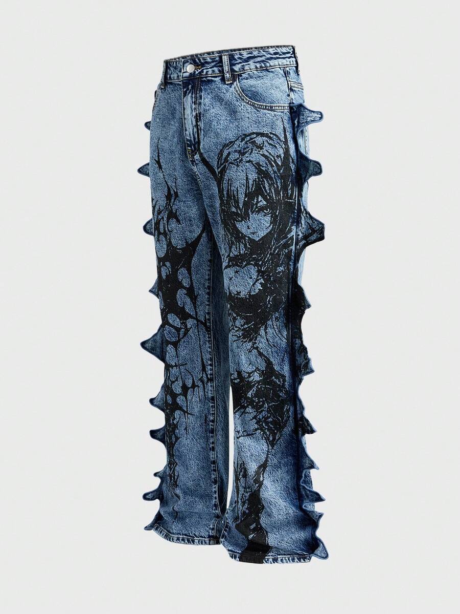 Men's Cartoon Anime Character Graphic Pocket 3D Design Jeans