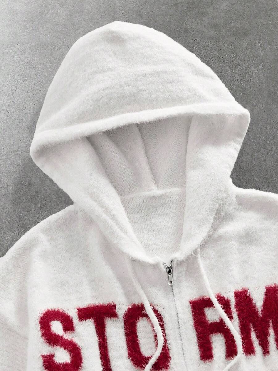Men's Casual Fashionable Street Slogan Graphic Zip-Up Drawstring Hoodie, Autumn/Winter