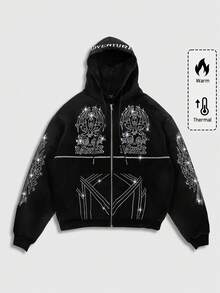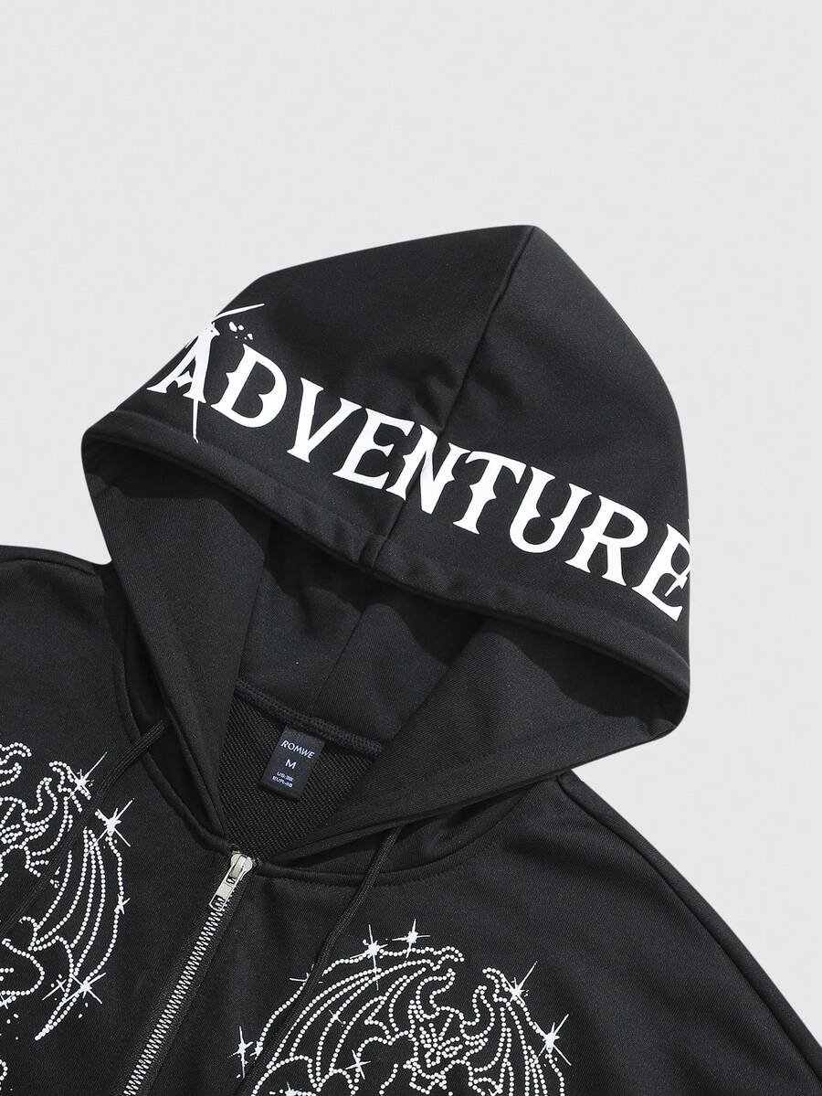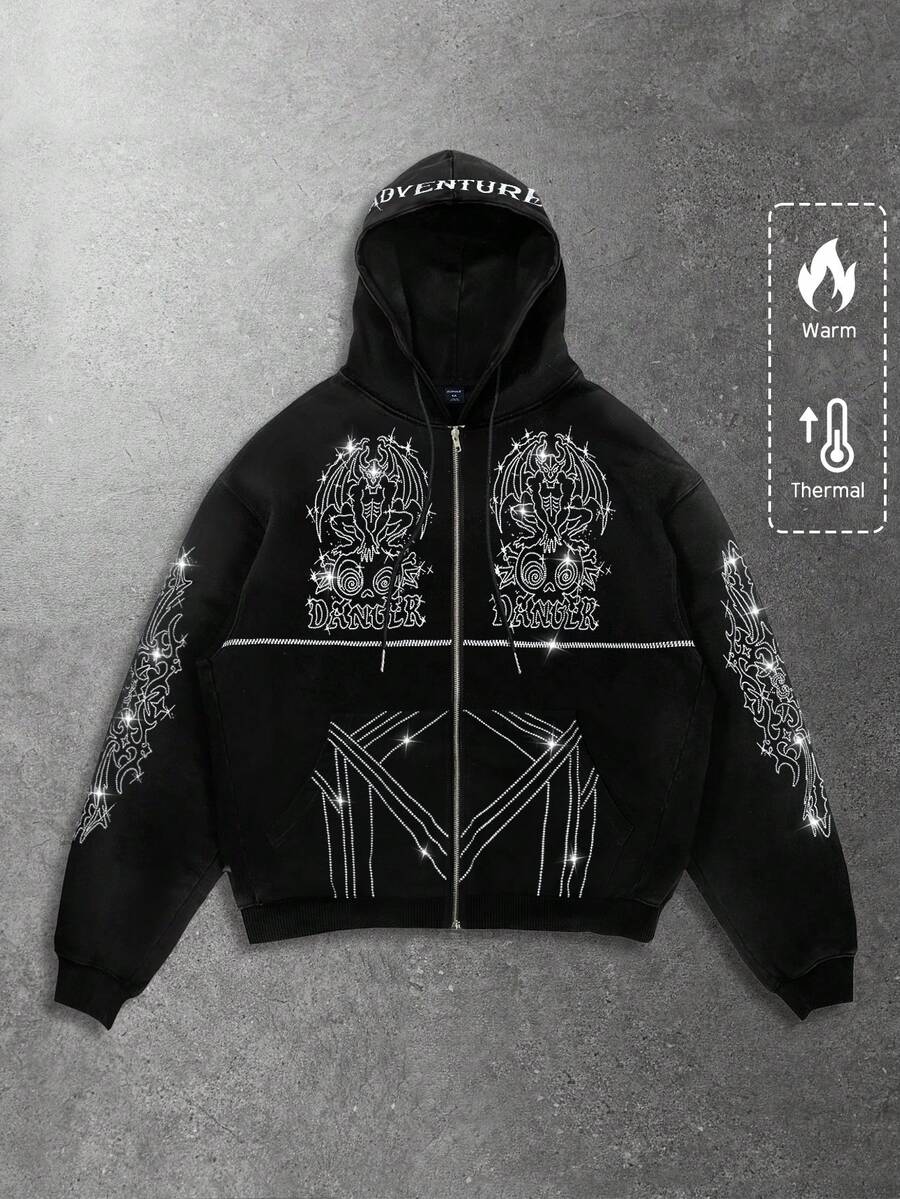 Men's Casual Faux Rhinestone Print Hoodie Sweatshirt, Autumn