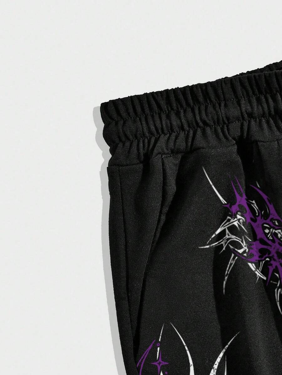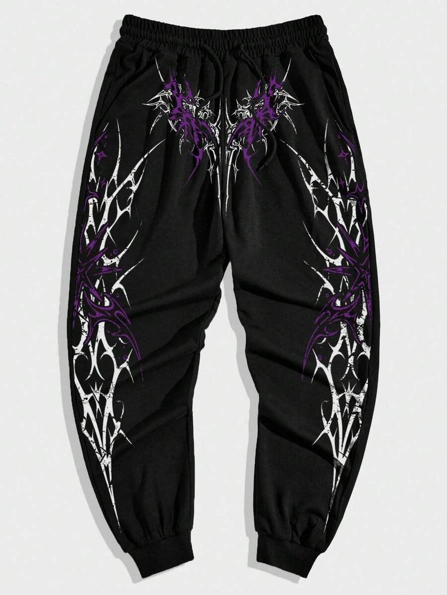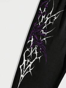Men's Casual Gothic Print Drawstring Waist Sweatpants, Autumn