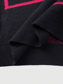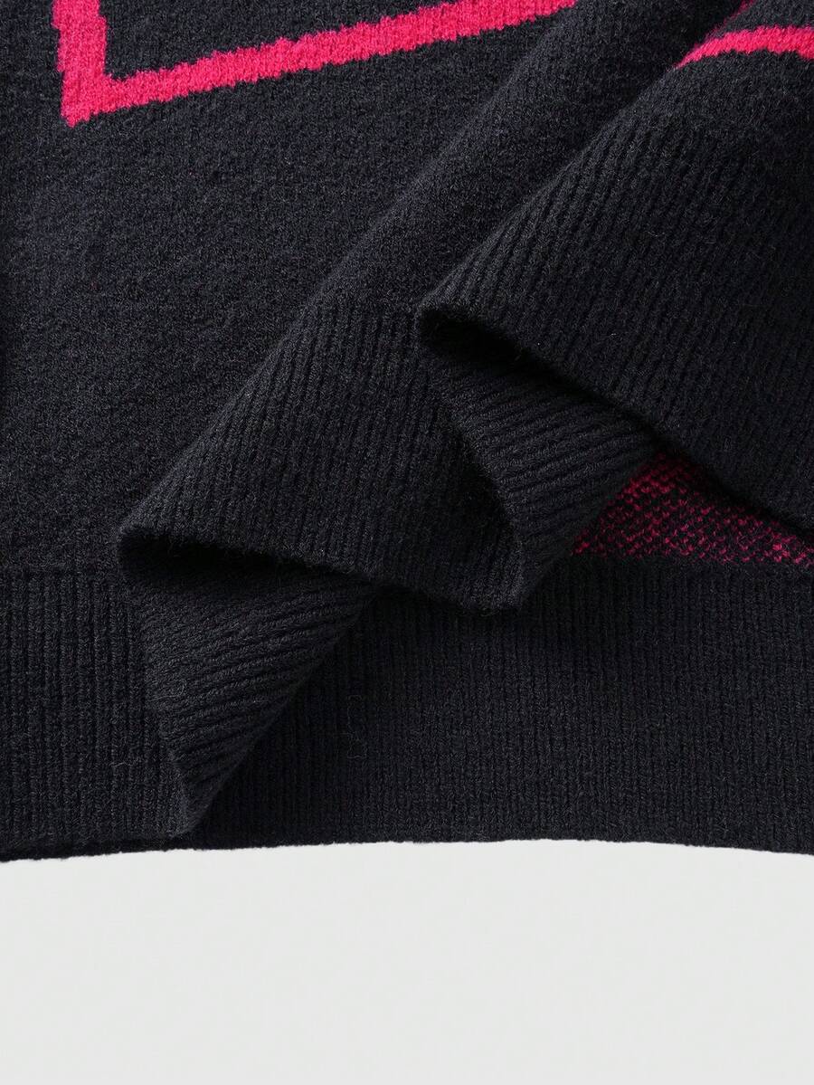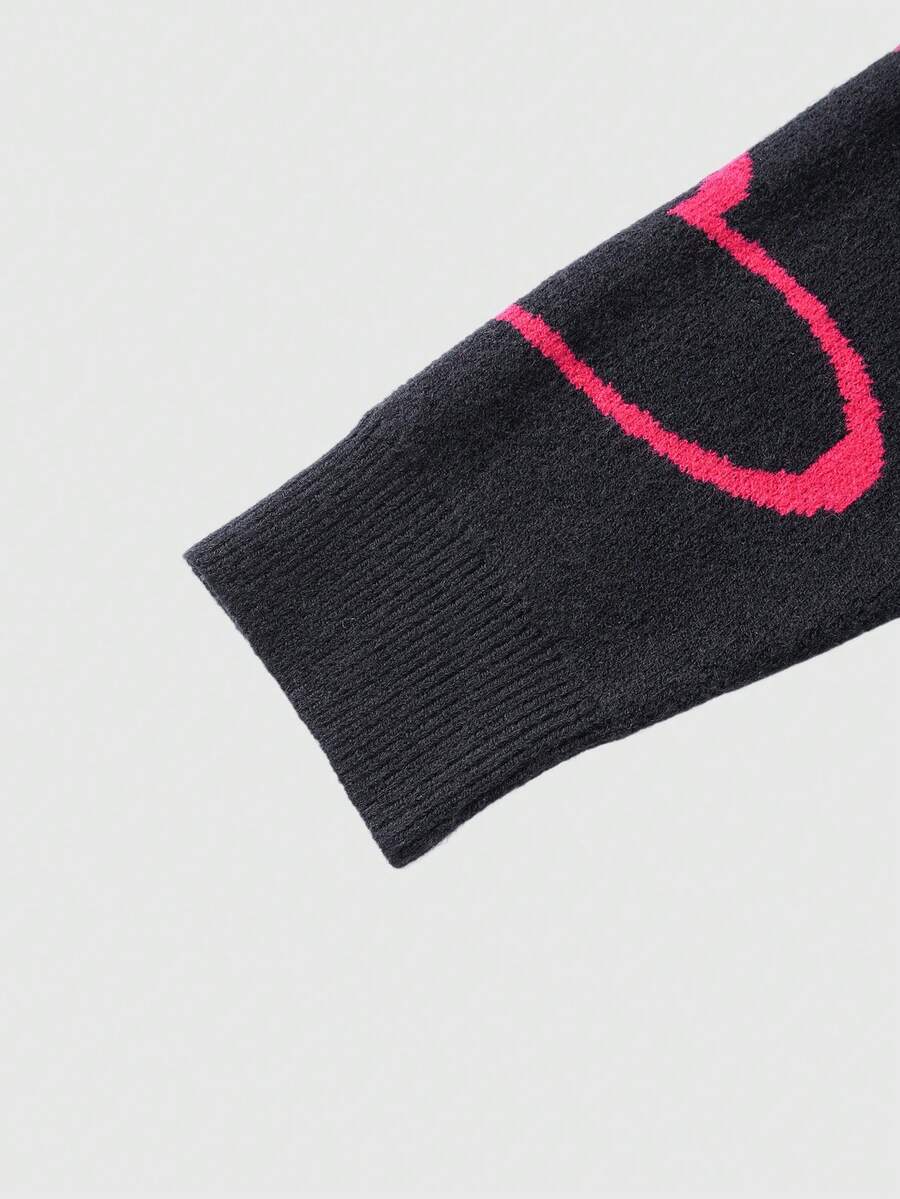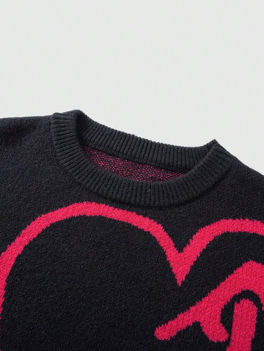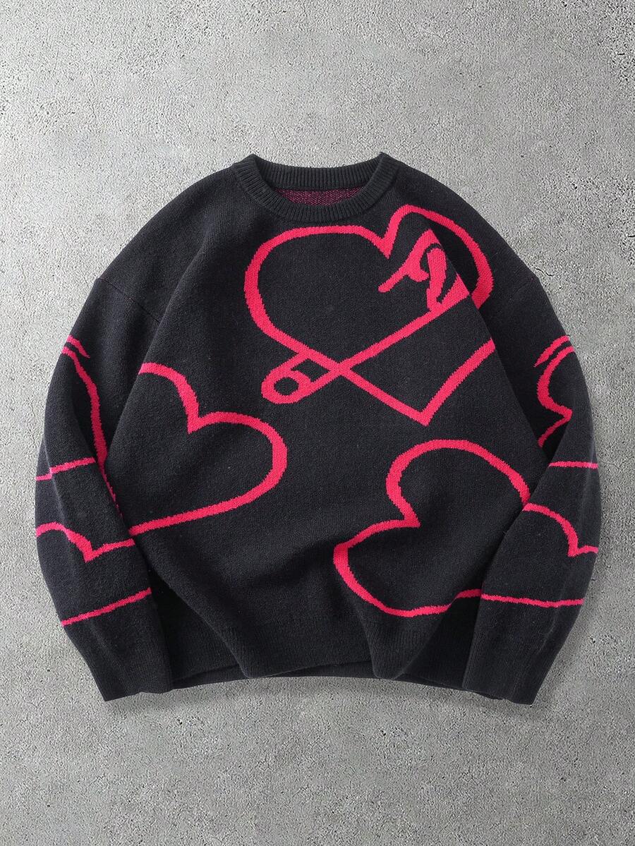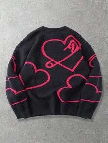 Men's Casual Heart & Paper Clip Pattern Dropped Shoulder Loose Knit Sweater, Autumn/Winter, Valentine's Day