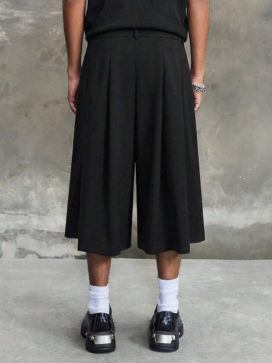 Men's Casual Pleated Loose Wide Leg Suit Shorts