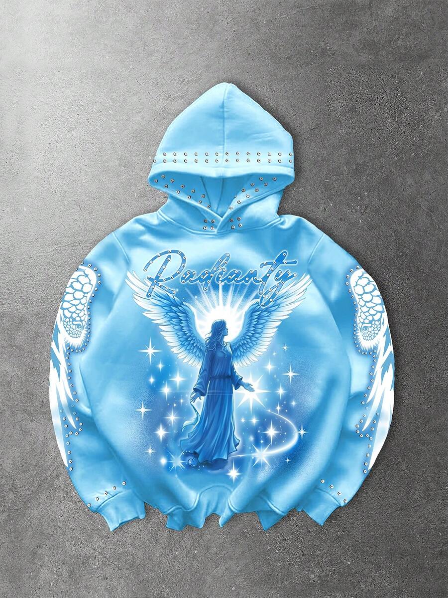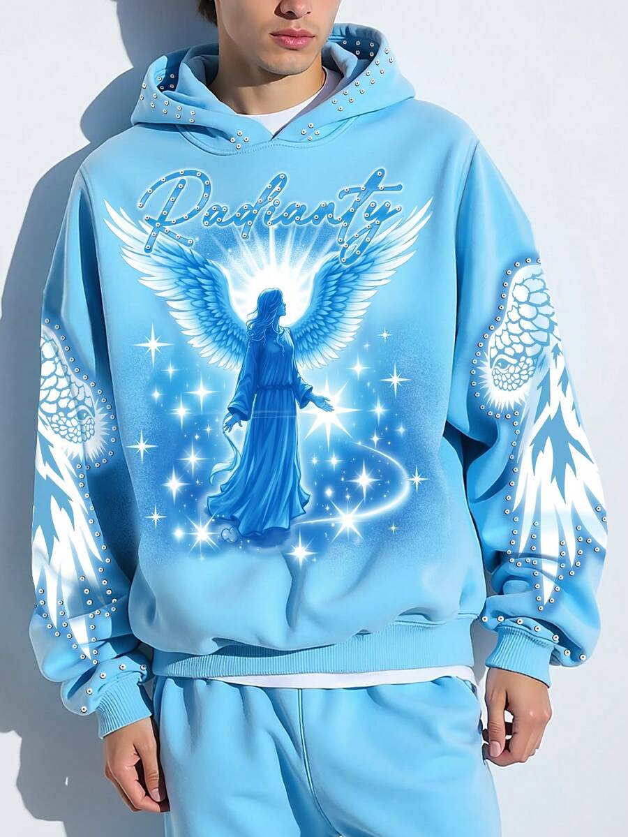 Men's Casual Wing & Portrait Graphic Hoodie, Autumn