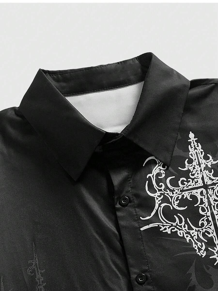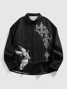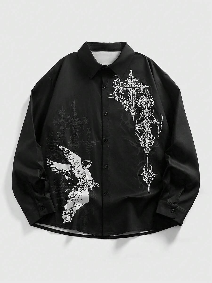 Men's Dark Angel Print Single-Breasted Casual Street Fashion Shirt