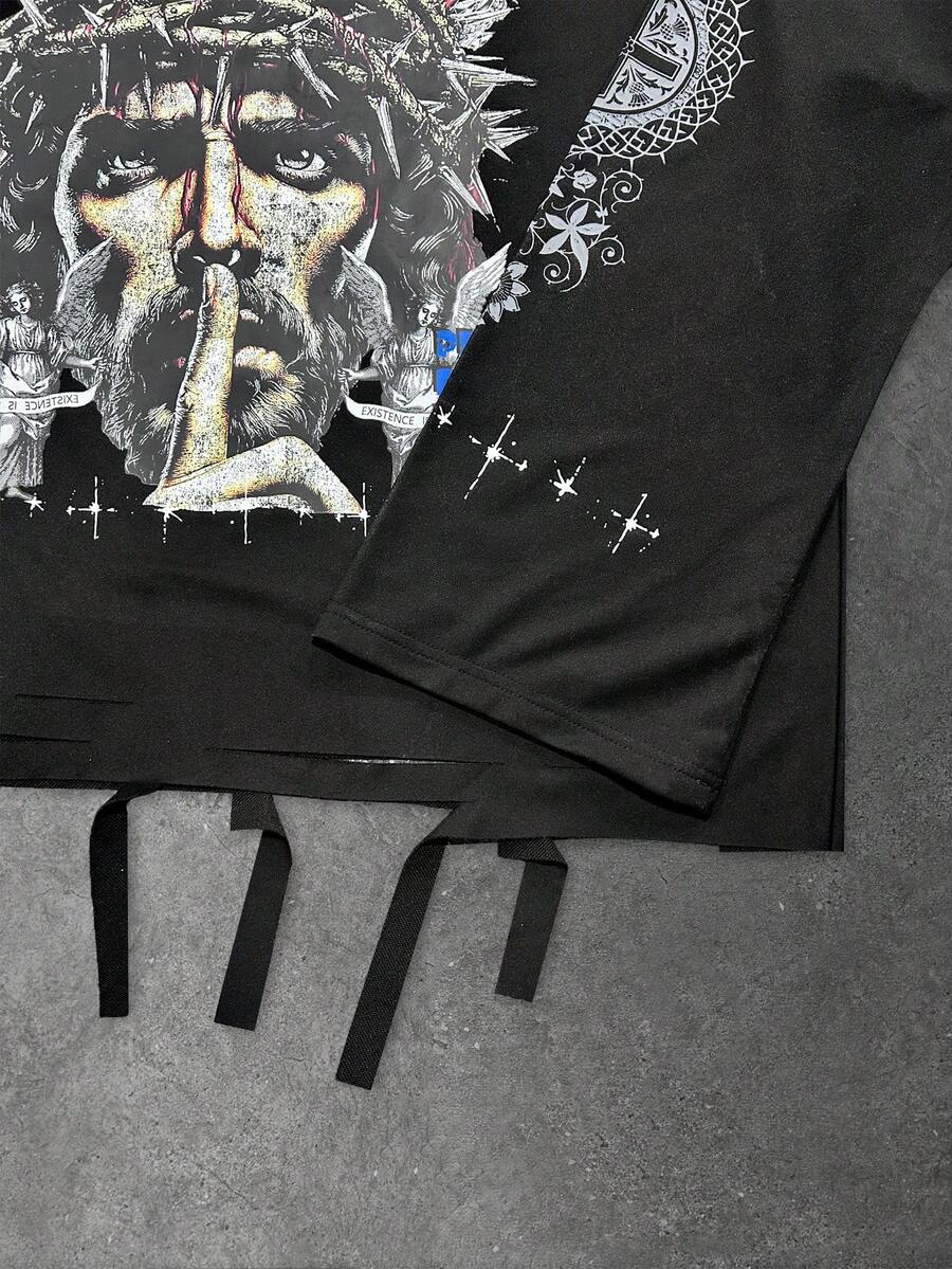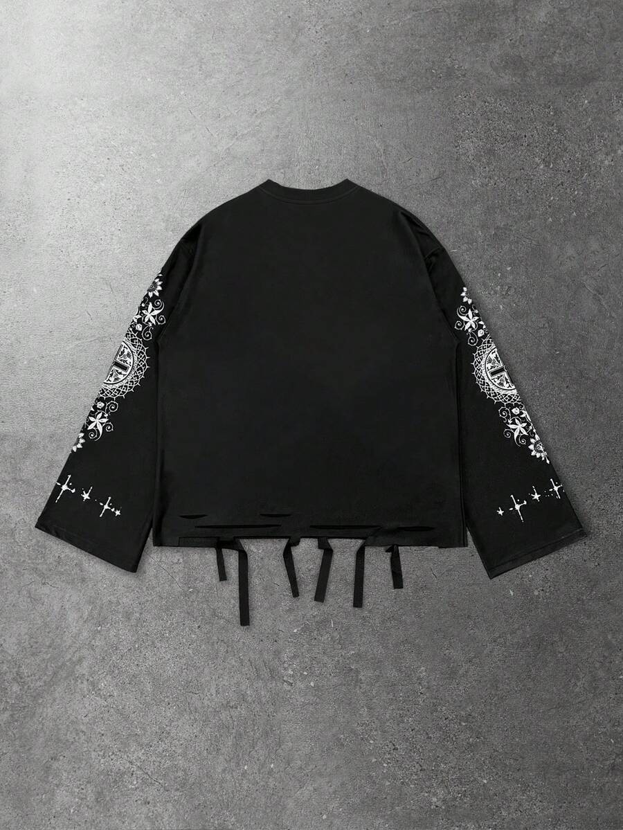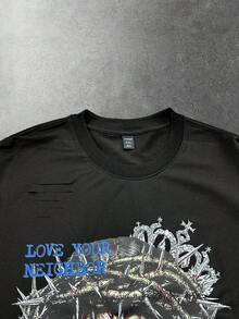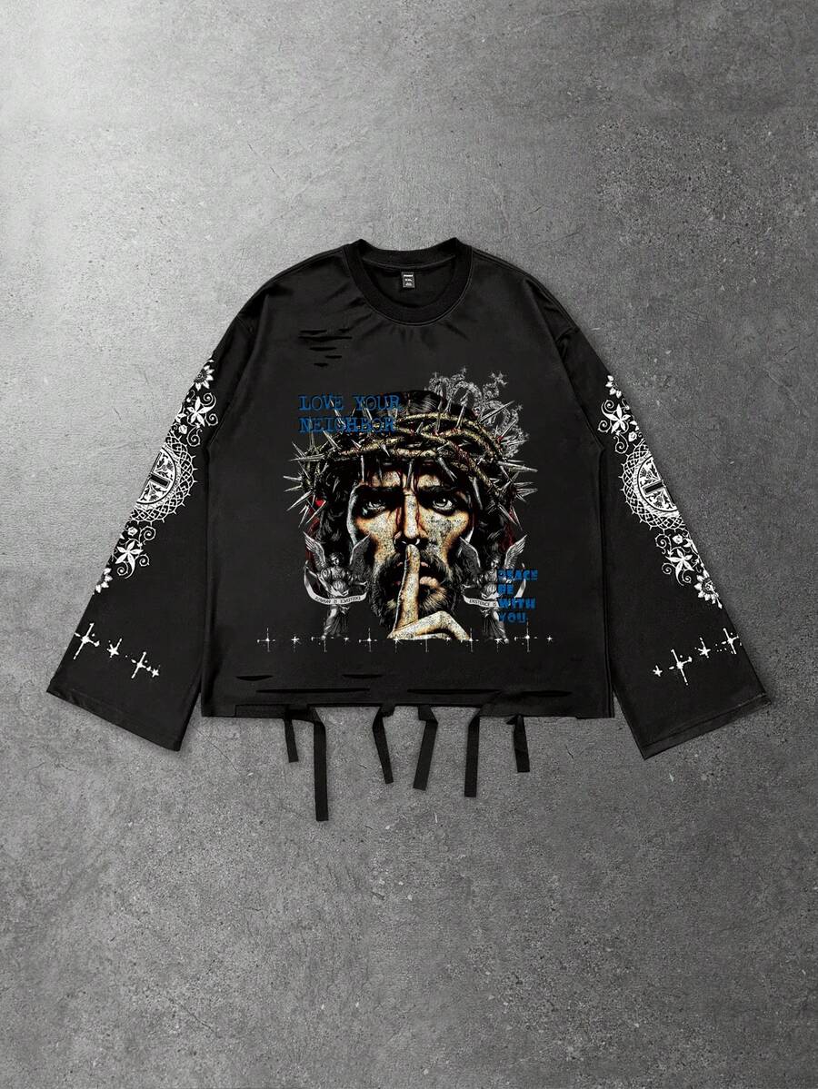 Men's Distressed Print Long Sleeve T-Shirt, Loose Fit