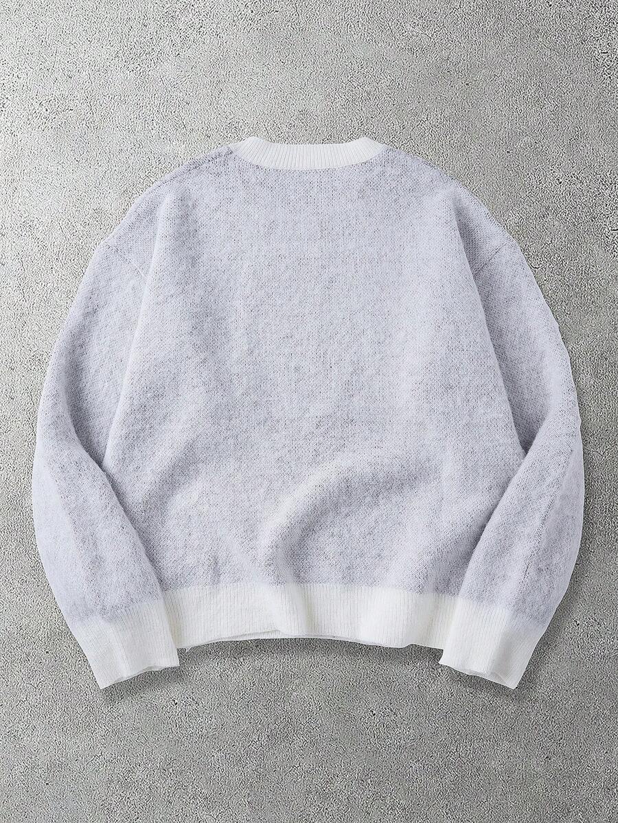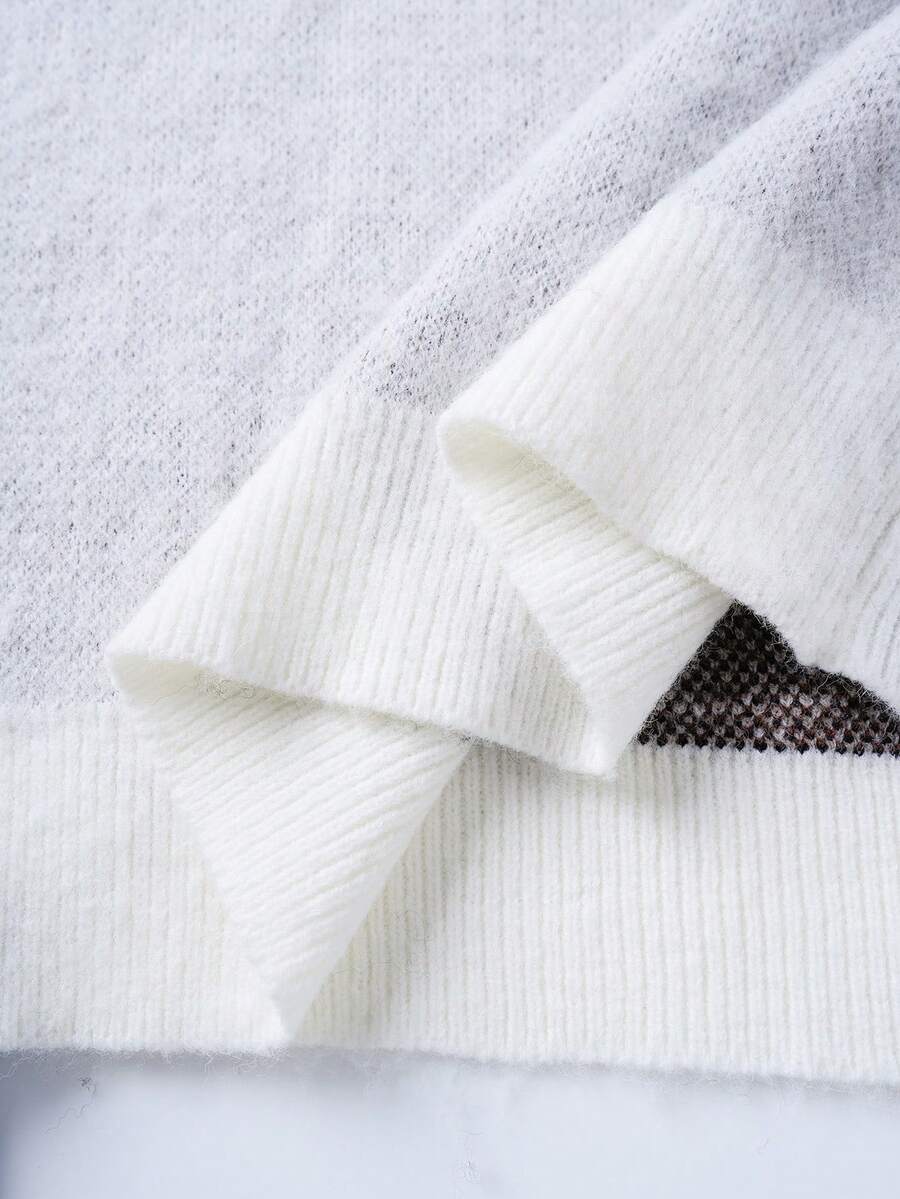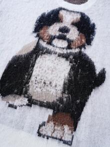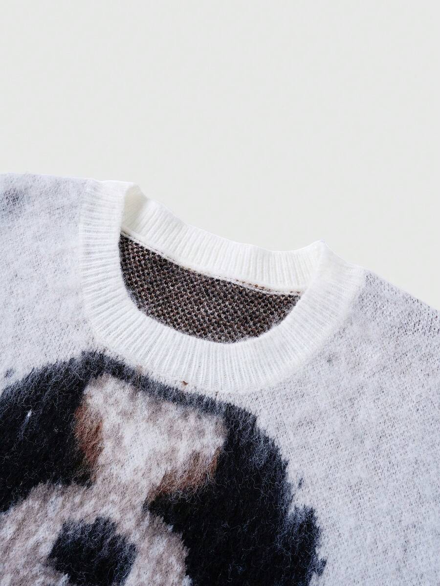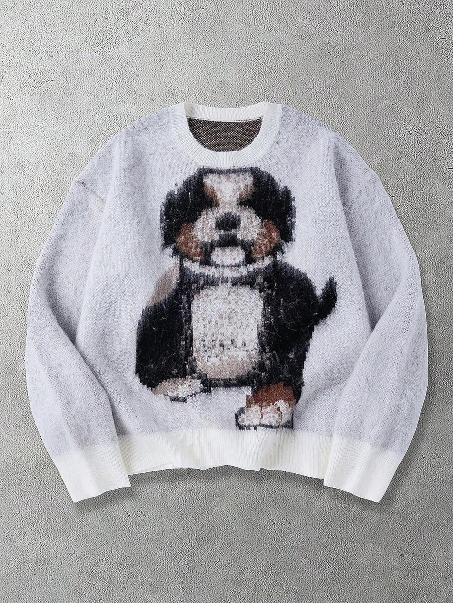 Men's Dog Jacquard Knit Crew Neck Casual Loose Sweater