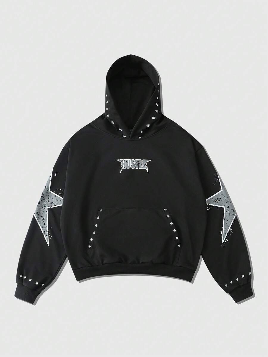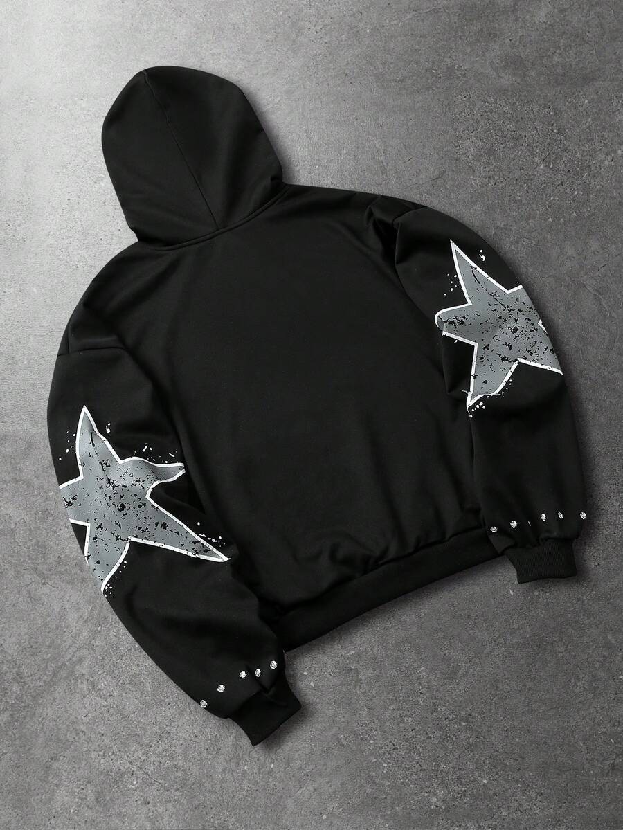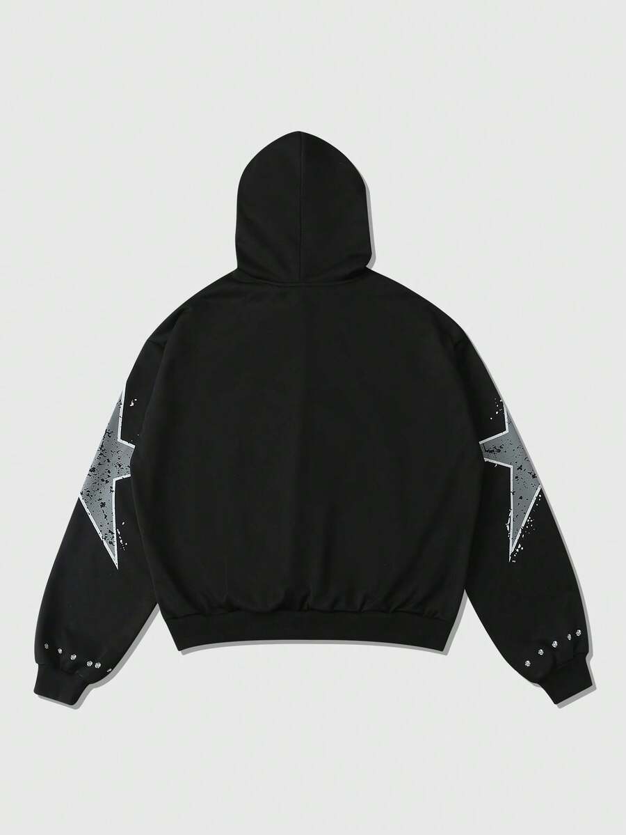 Men's Fashionable Drawstring Hooded Sweatshirt With Five-Pointed Star Pattern, Long Sleeve