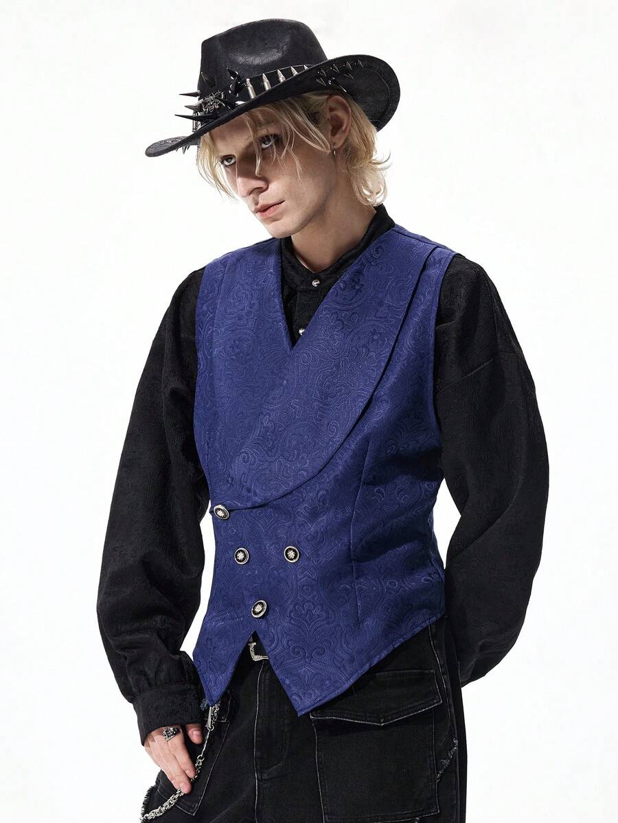 Men's Gothic Jacquard Double-Breasted Business Suit Vest