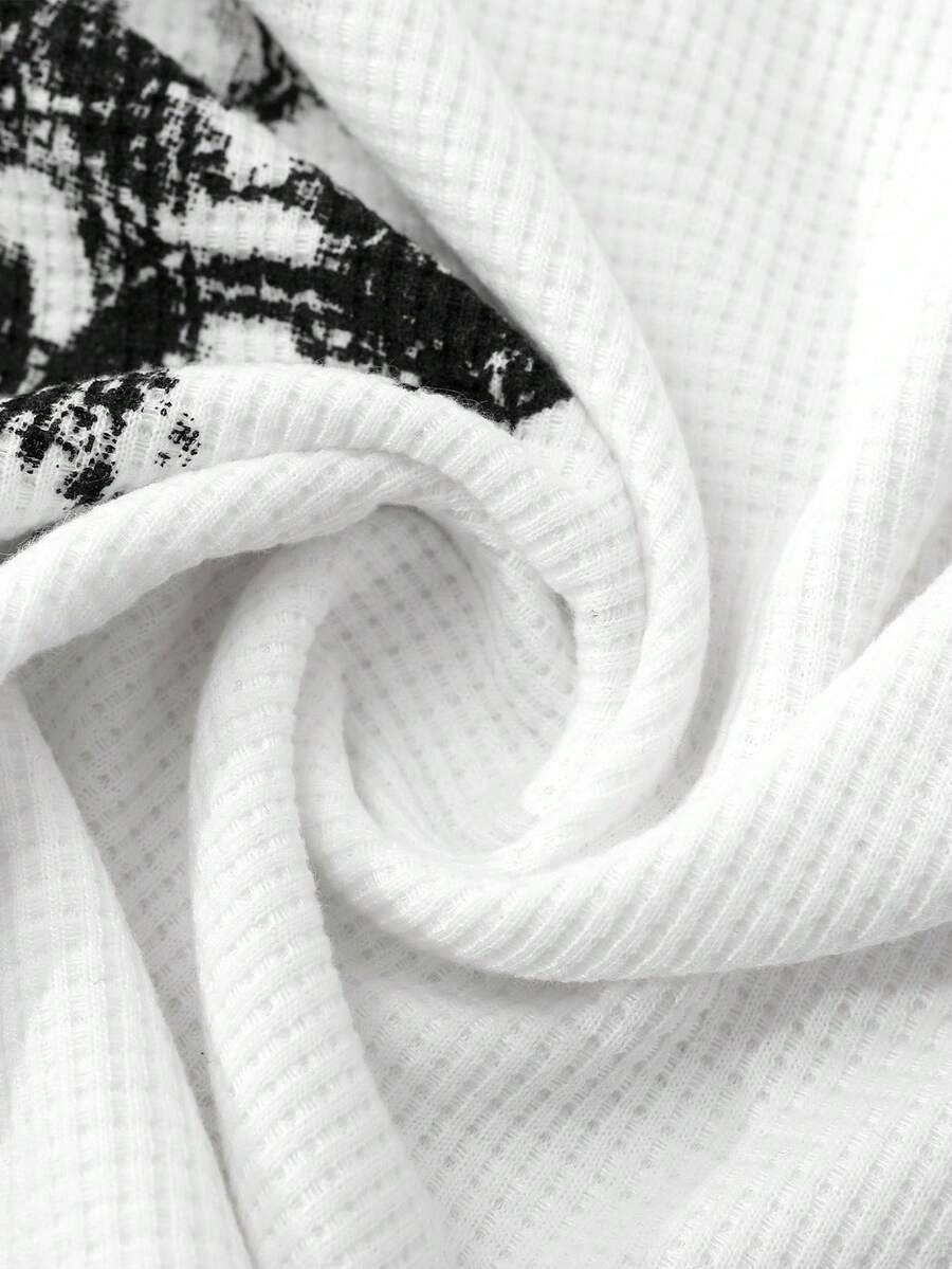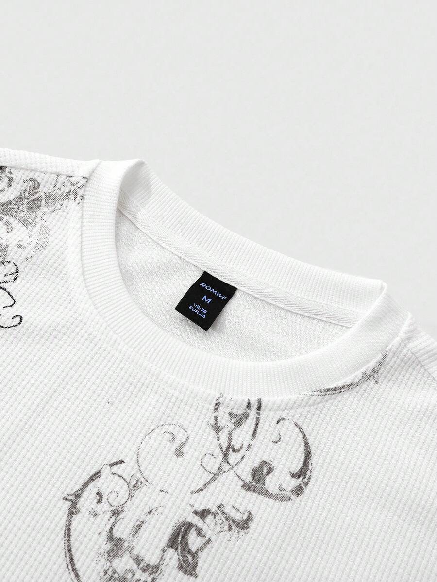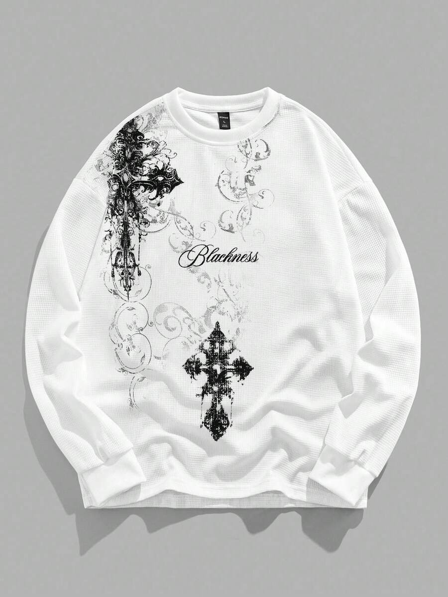 Men's KPOP Gothic Cross Print Waffle Fabric Pullover Sweatshirt, Suitable For Everyday Wear, Autumn/Winter