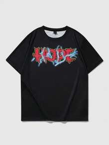 Street Life Men's Letter Print Round Neck Short Sleeve T-Shirt, Suitable For Everyday Wear In Spring/Summer