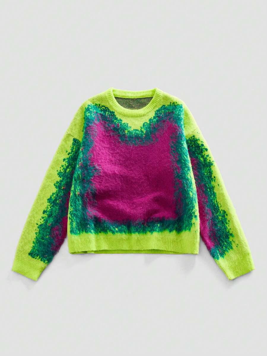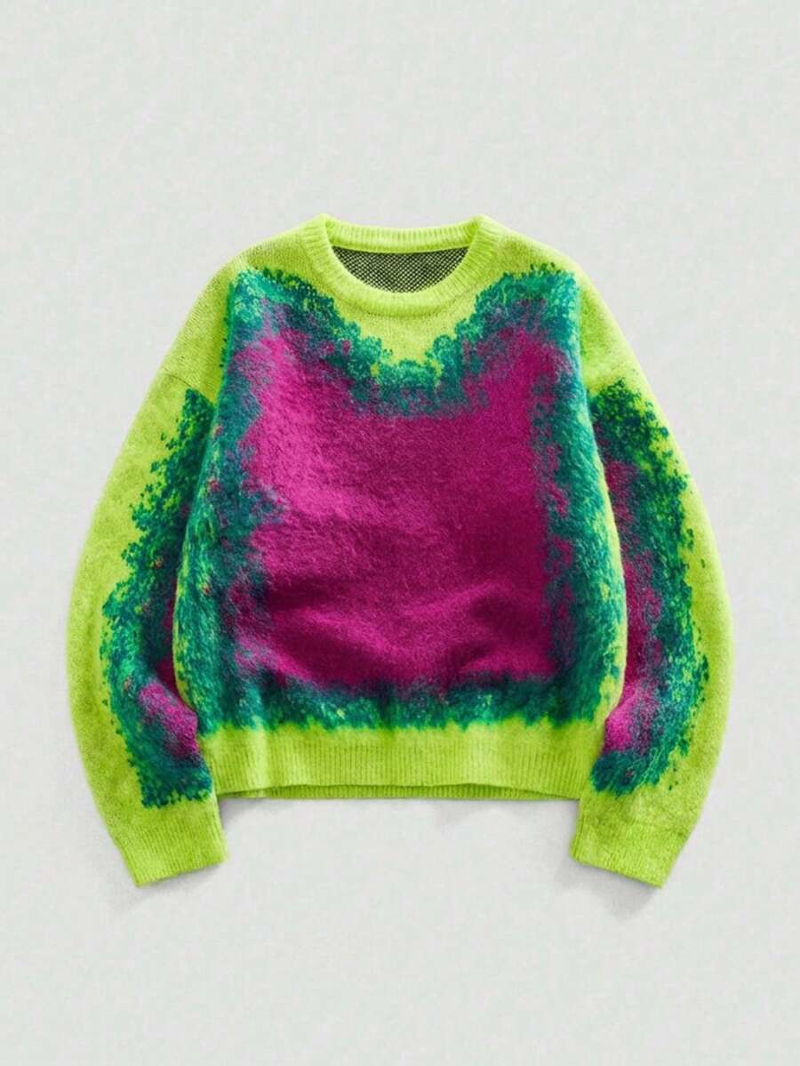 Men's Loose Fit Crew Neck Jacquard Knit Long Sleeve Sweater