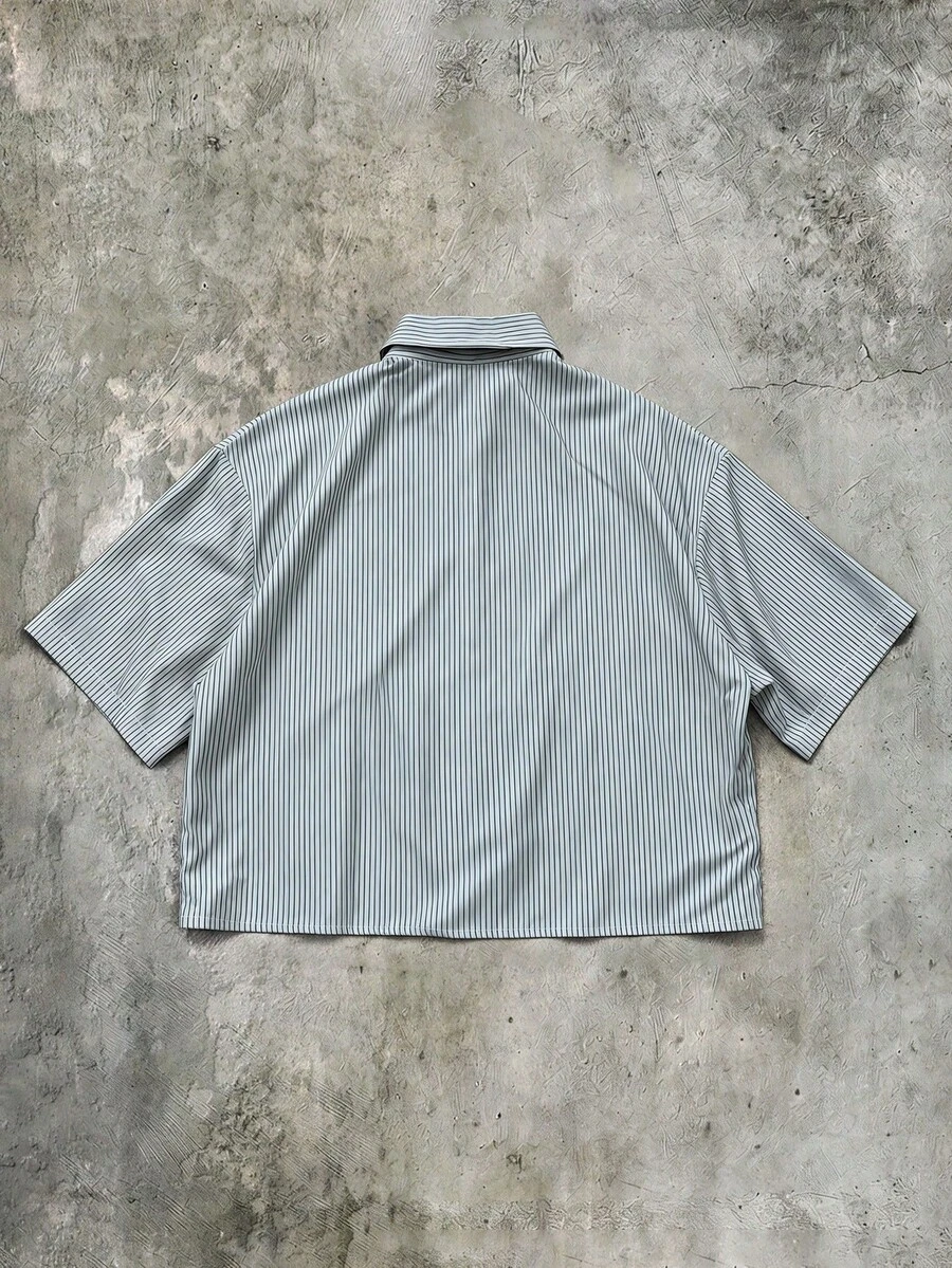 Men's Microphone Print Striped Short Sleeve Shirt, Retro Street Style