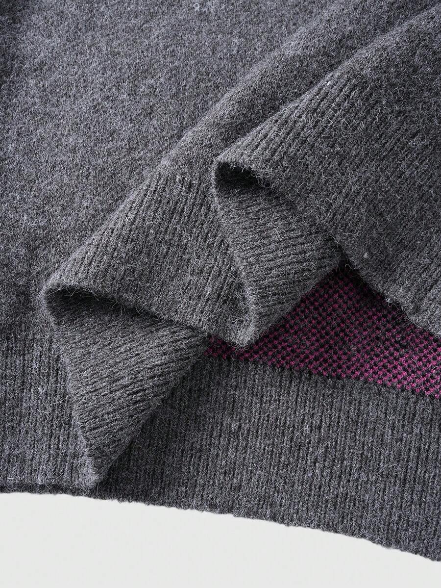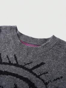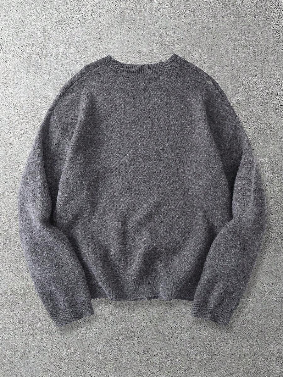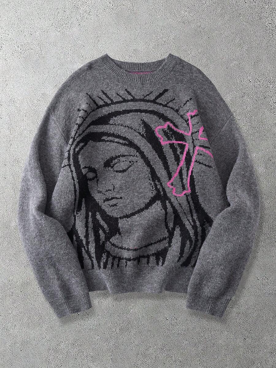 Men's Mission & Cross Pattern Crew Neck Long Sleeve Jacquard Knit Sweater