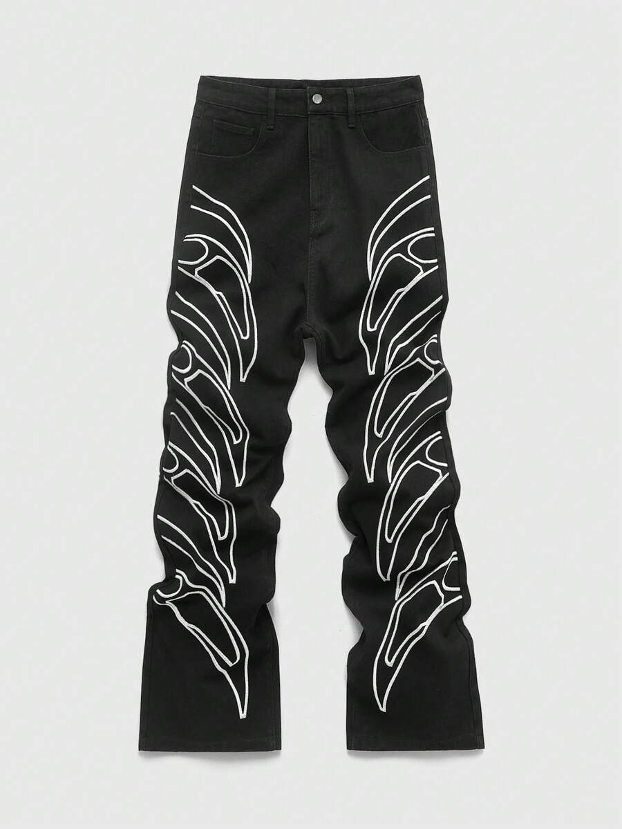 Men's Pocketed Embroidered Flare Leg Black Denim Jeans
