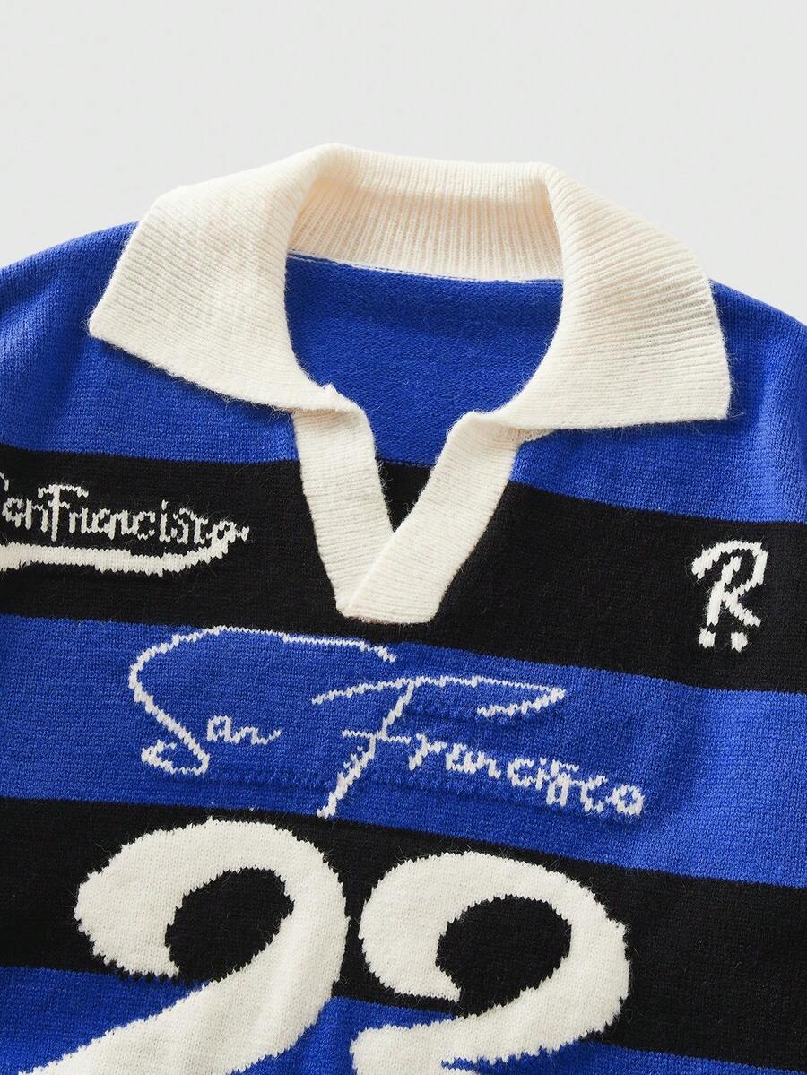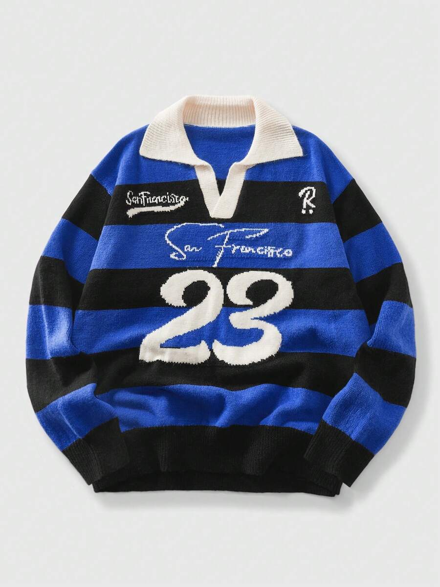 Men's Preppy Collared Numeric Knit Streetwear Sweater