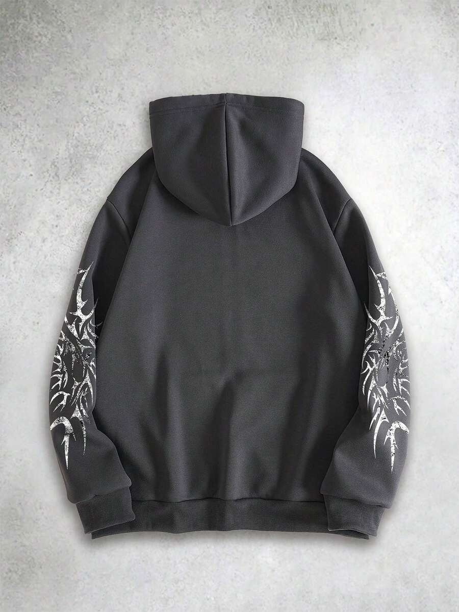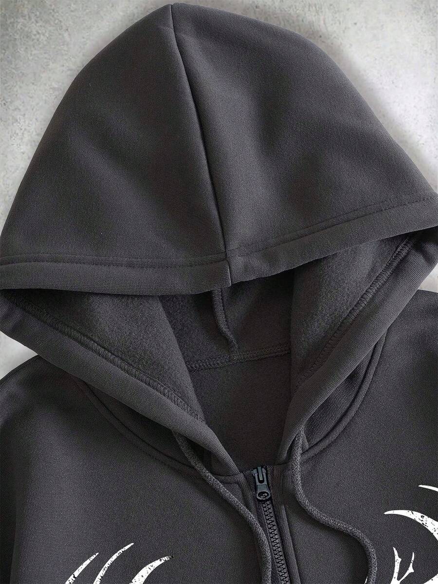 Men's Retro Gothic Hooded Drawstring Casual Zip-Up Versatile Fashion Sweatshirt