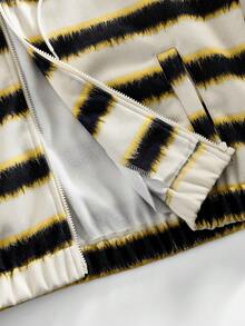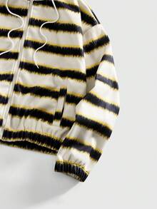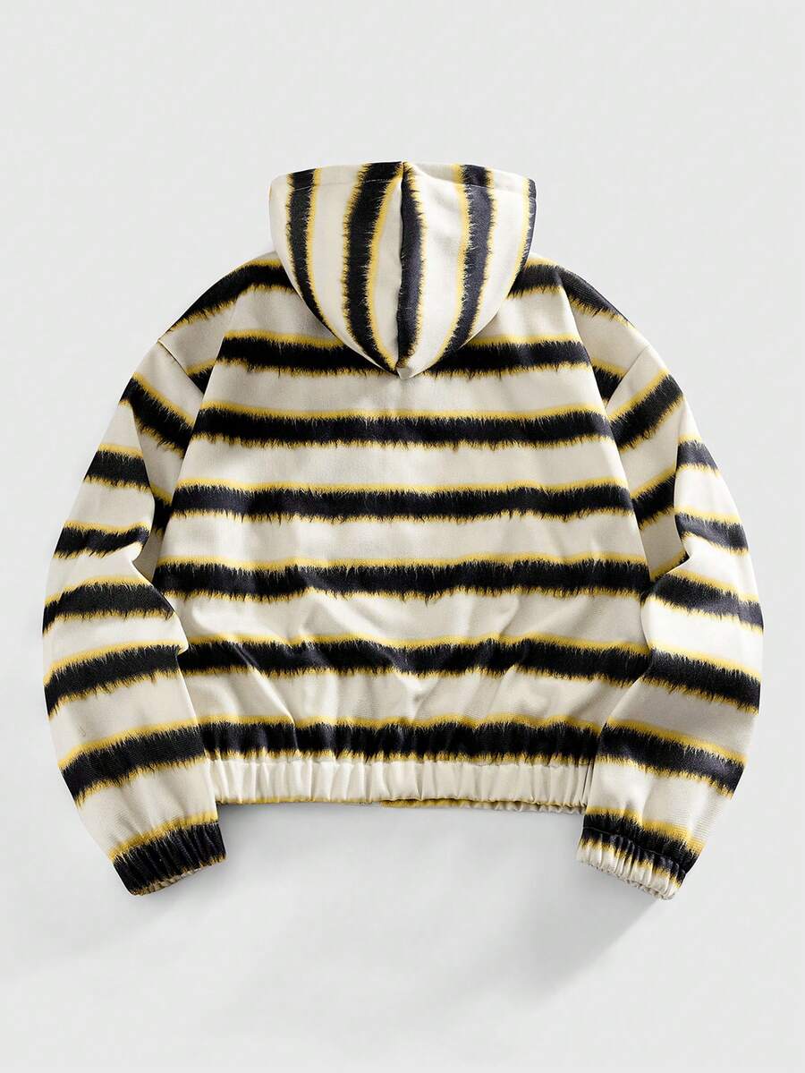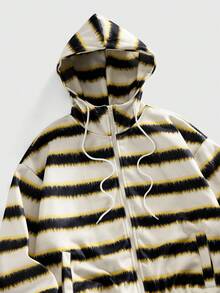 Men's Striped Pocket Hooded Casual Versatile Long Sleeve Jacket