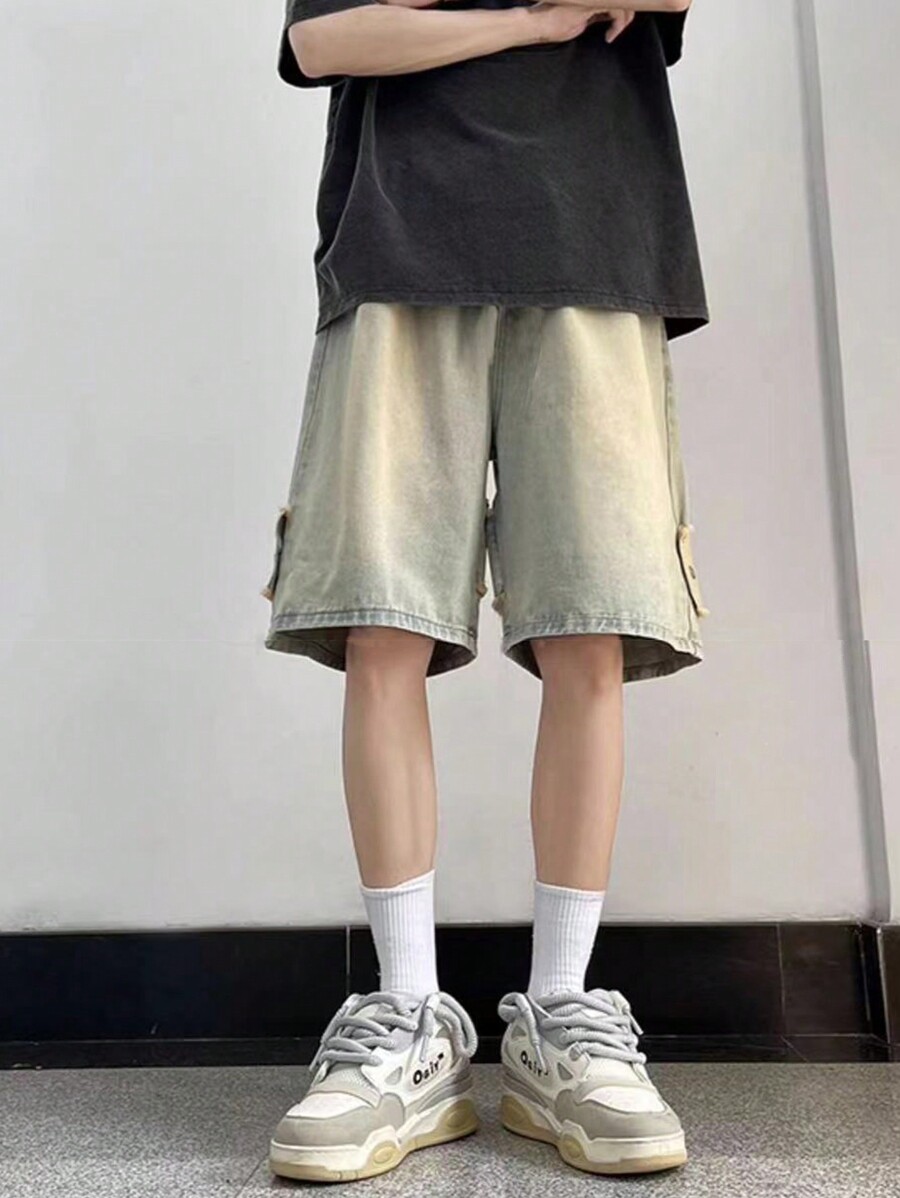 Men's Summer Loose Fit Raw Hem Denim Shorts With Letter Print