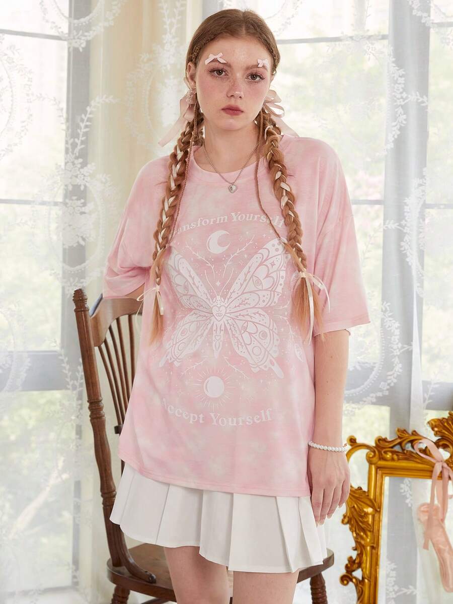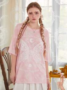 Mystic heart Tie Dye Butterfly Graphic Drop Shoulder Tee