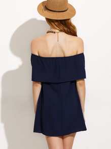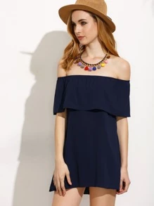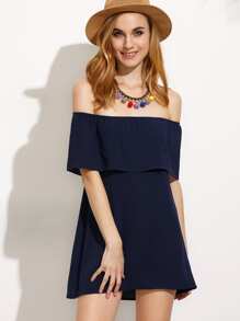 Navy Off The Shoulder Layered Dress