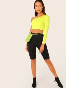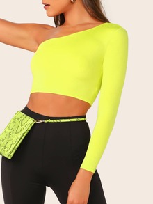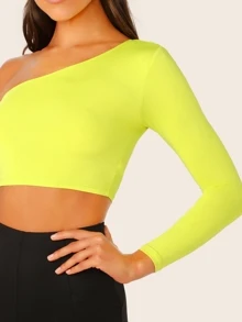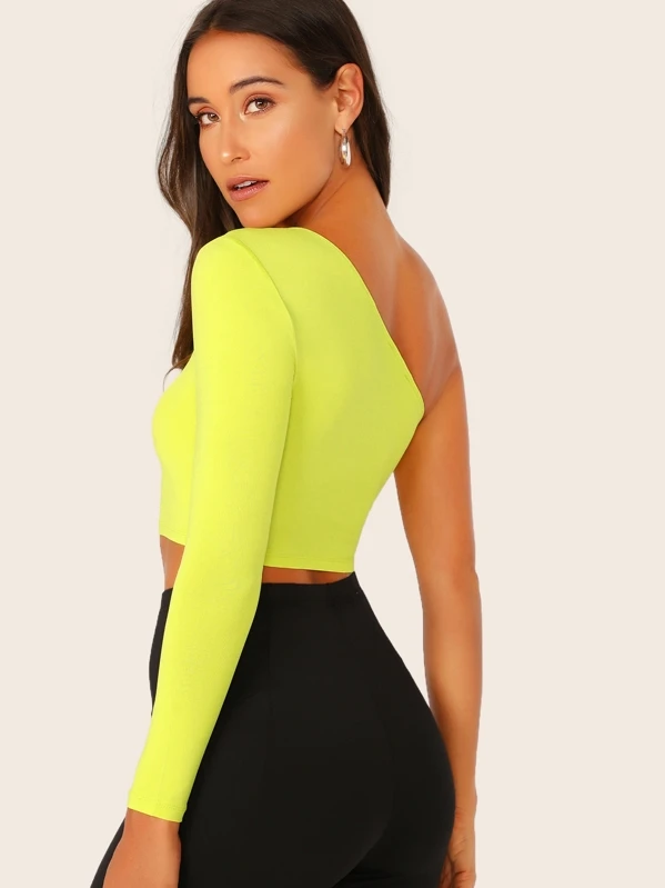 Neon Lime One Shoulder Crop Tee