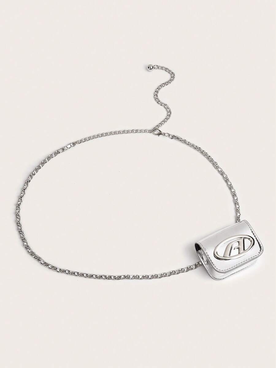New Letter Print Waist Chain Bag For Women, French Style Mini Lightweight Chain Fanny Pack
