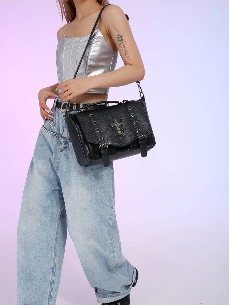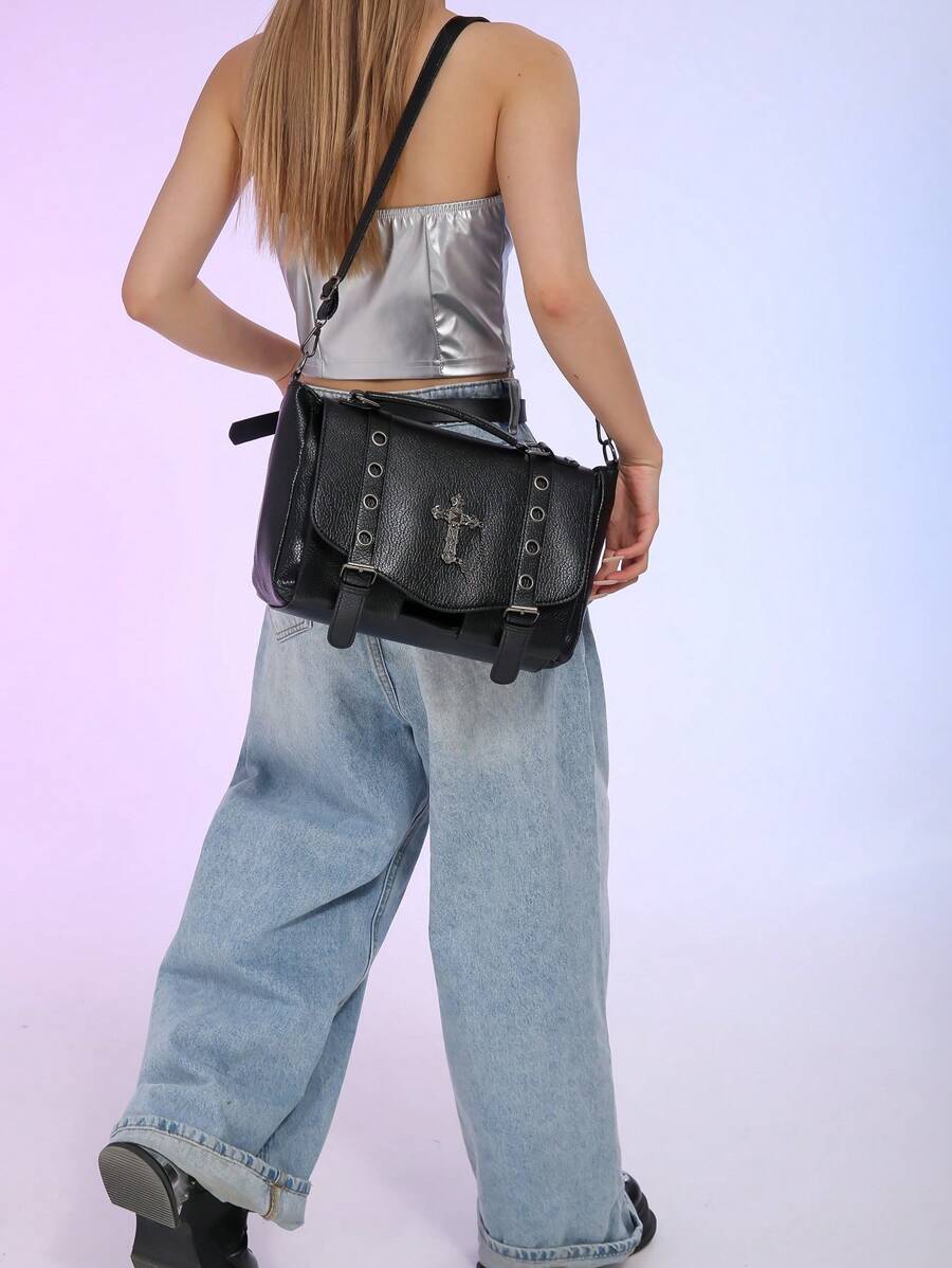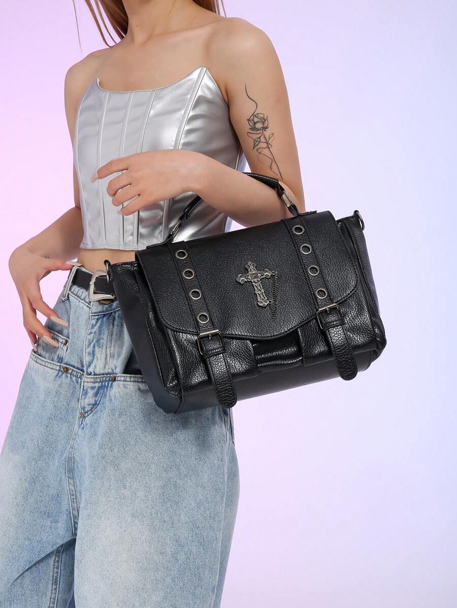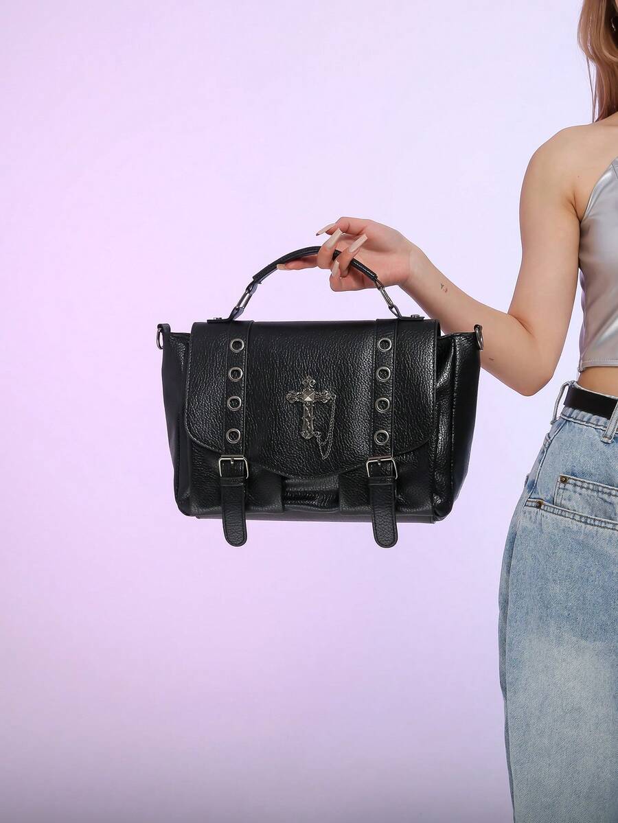New Punk Style Ladies' Handbag, Motorcycle Bag, Gothic Black Bag, Women's Casual Crossbody Bag