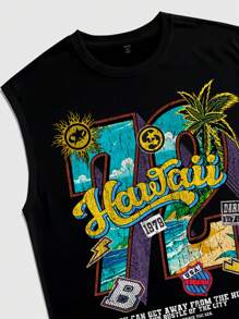Street Life Numeric Print Sleeveless T-Shirt For Men, Round Neck Summer Casual Sports Vest, Vacation Print Shirt Tank Top