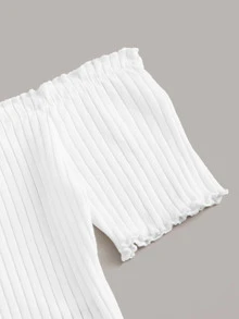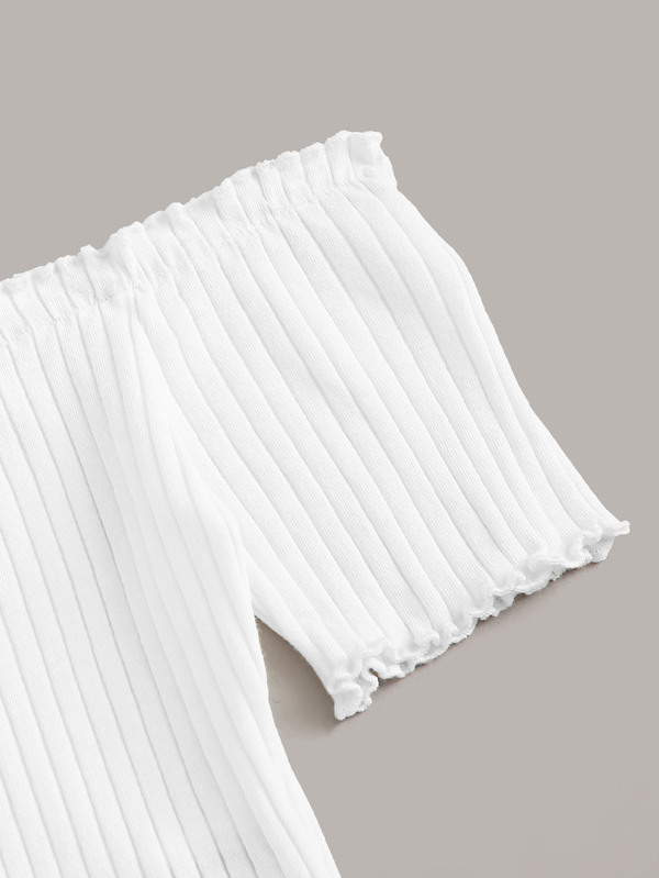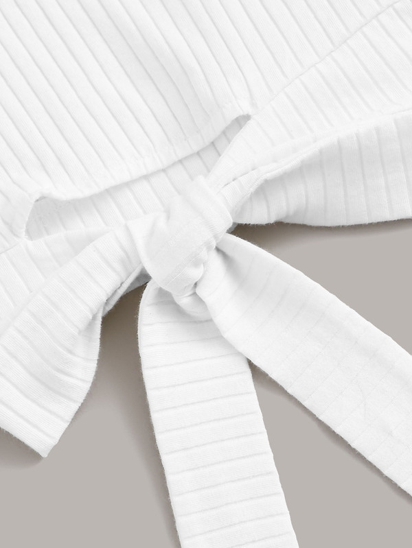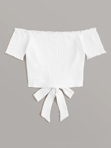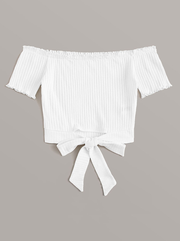 Off Shoulder Tie Hem Rib-knit Top