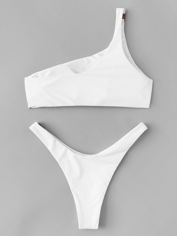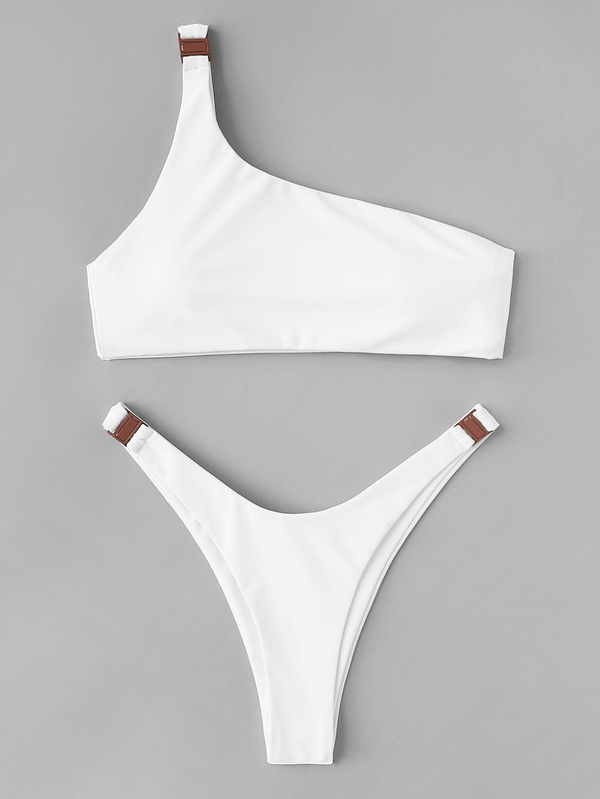 One Shoulder Top With High Leg Buckle Bikini