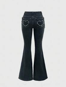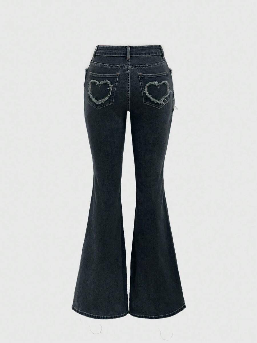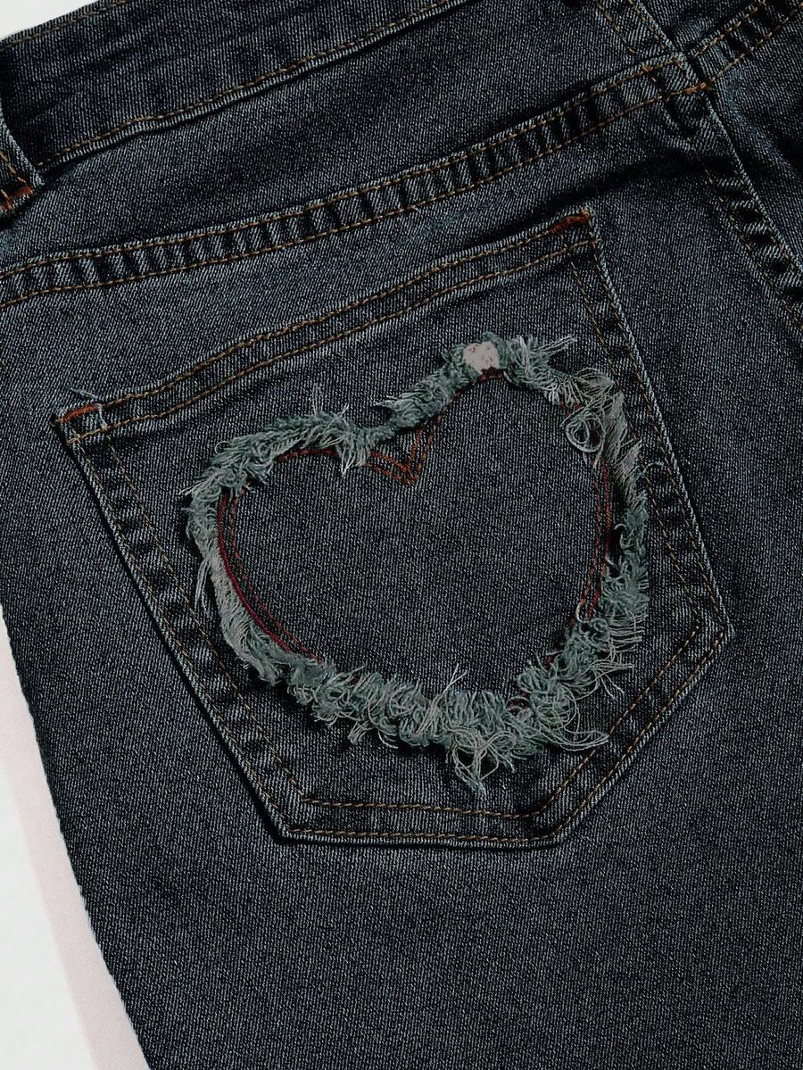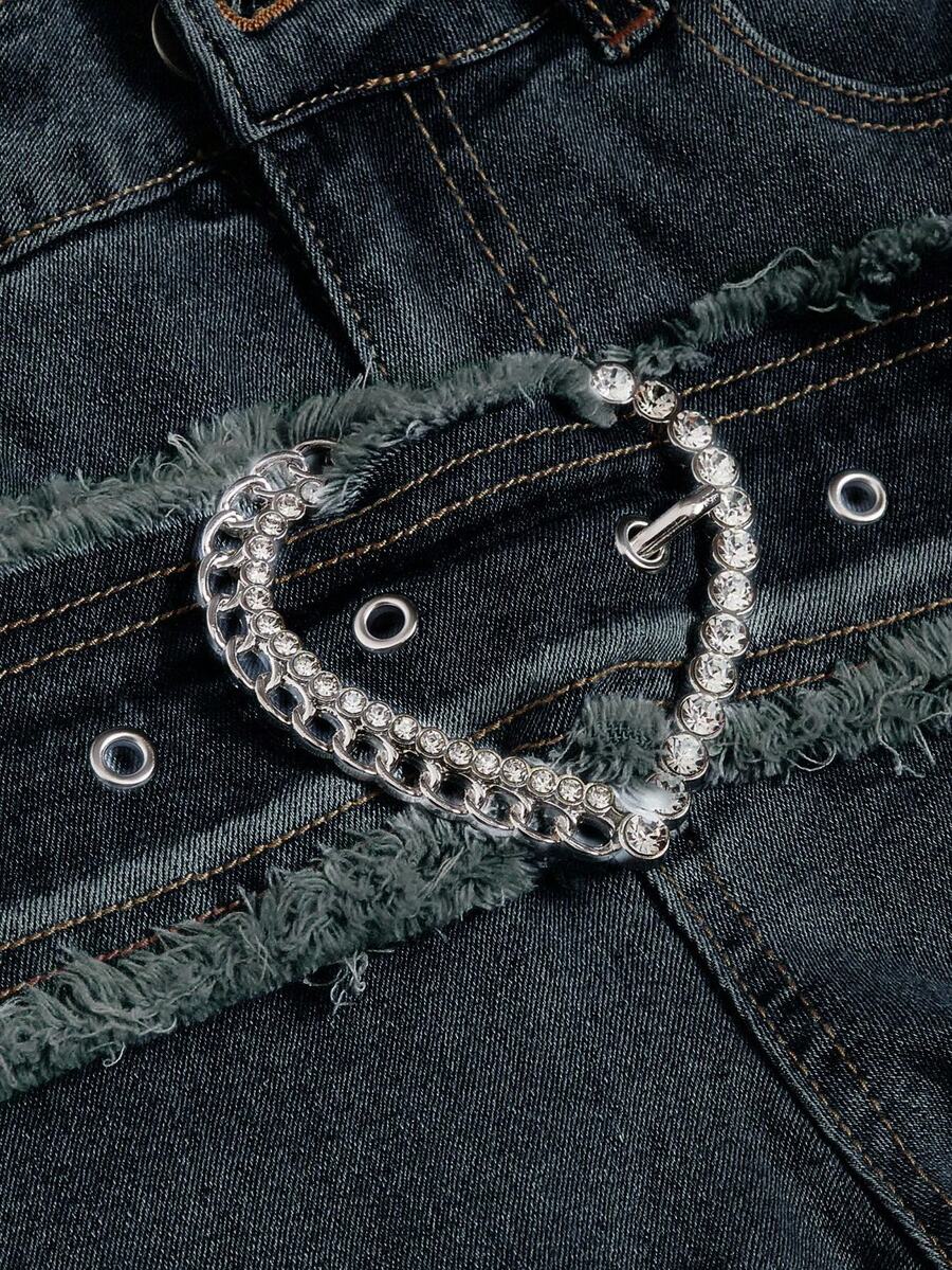 PETITE Y2K Retro Heart Metal Buckle Frayed Waist Belt Low Waist Skinny Flare Jeans For Women